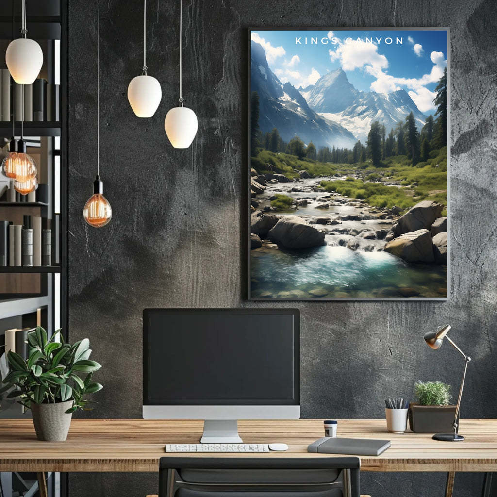 Kings Canyon National Park Poster — Majestic Mountain River Art Print