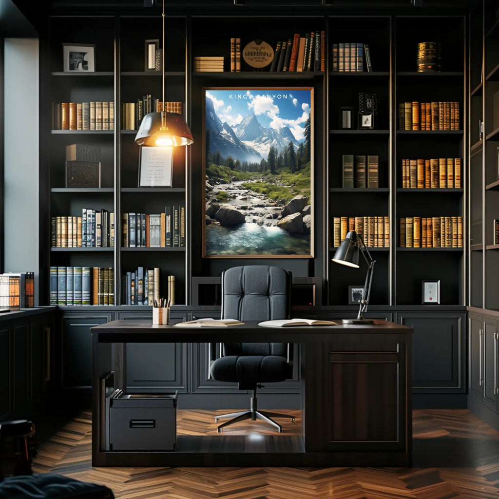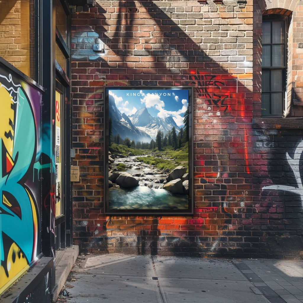 Ready to hang: Order your Kings Canyon National Park poster from PosterGoat today and infuse your space with the calm energy of mountain rivers and alpine light. Add to cart now to elevate your walls with breathtaking travel art.