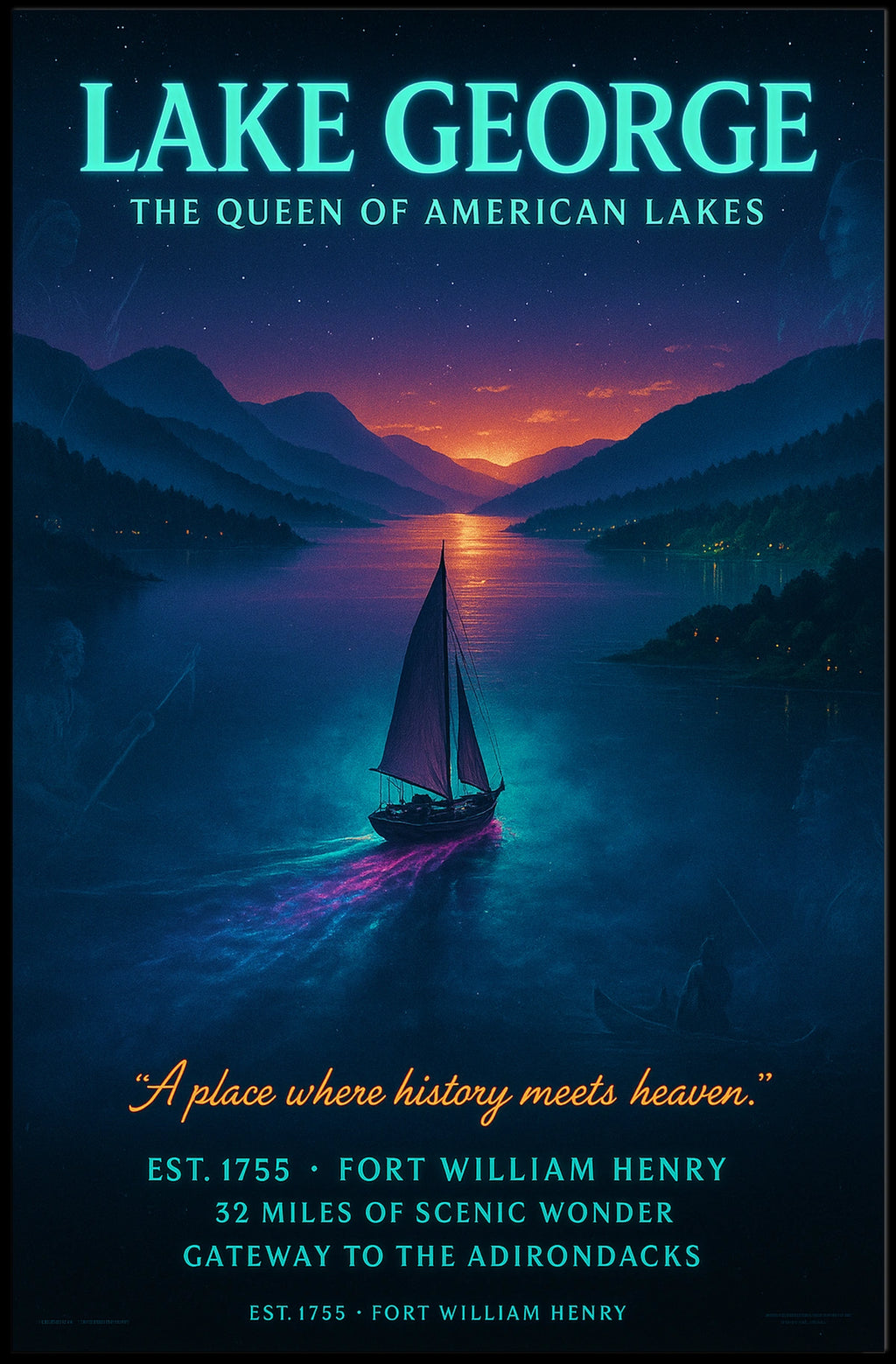 This Lake George poster captures the essence of The Queen of American Lakes. It's designed for decor lovers and wanderlust spirits, adding charm to any room with visuals inspired by real-world scenery. A great fit for home décor and wall art lovers alike.