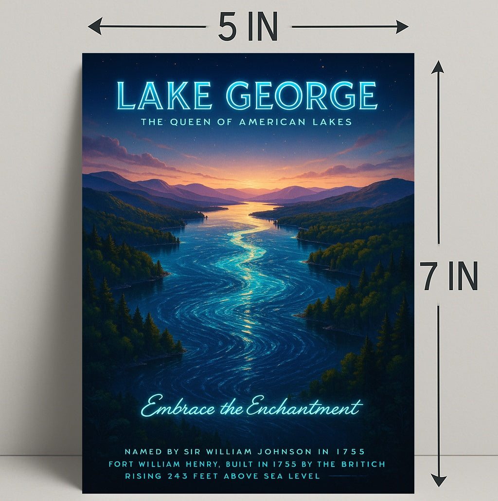 Experience the stunning beauty of Lake George with this captivating poster, aptly titled "The Queen of American Lakes." Crafted for decor enthusiasts and travel lovers alike, this art print perfectly encapsulates the tranquil charm of one of America's most scenic destinations. With its vibrant visuals inspired by real-world landscapes, this poster will elevate any room, bringing a touch of elegance and adventure to your home.