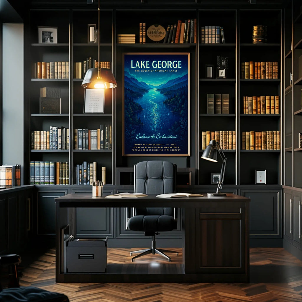 This Lake George Tranquility poster blends historic charm with serene landscape, adding depth and calm to any wall. Embrace timeless travel art that sparks imagination and evokes restful lakeside memories — order now and elevate your space with a touch of history.