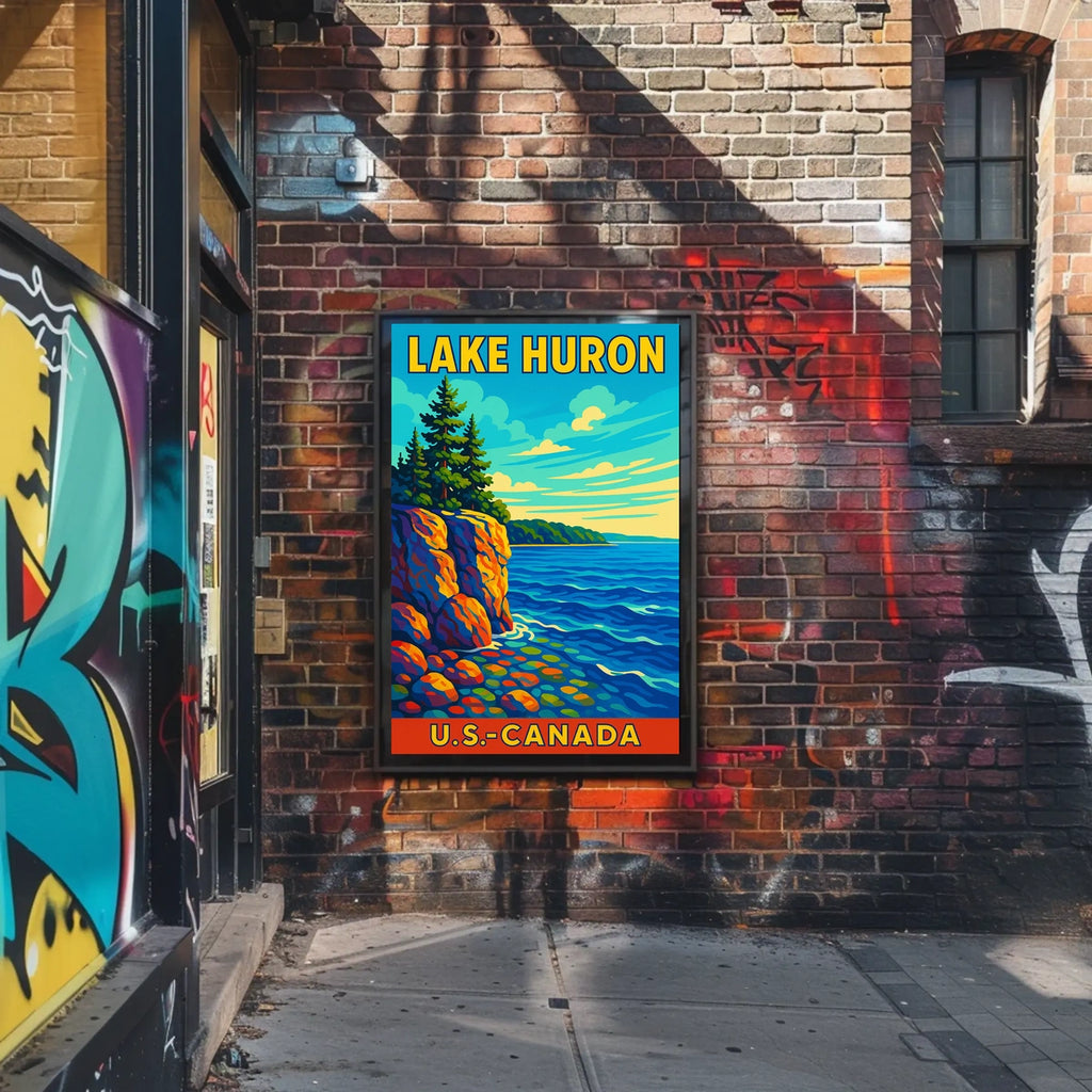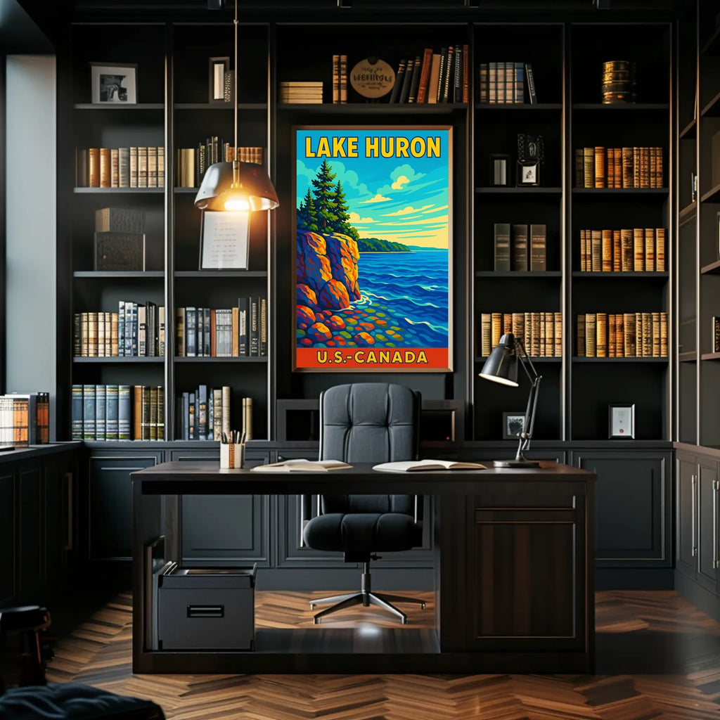 Perfect for homes, classrooms, offices, or gallery-inspired spaces, this Lake Huron Travel Poster blends bold scenery with refined design. Add it to your collection and let the lake-inspired serenity elevate your space—a true scenic centerpiece for any wall art decor.