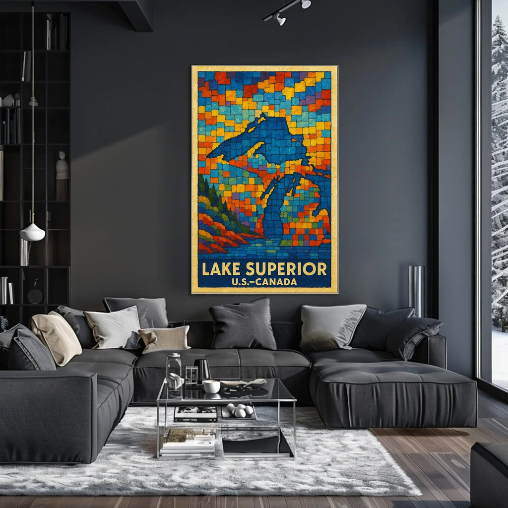 Perfect for a living room, bedroom, or office, this Lake Superior mosaic poster brings a touch of nature and wanderlust into your space. It also makes a thoughtful gift for art lovers, travelers, and anyone who cherishes scenic, lake-inspired wall art.