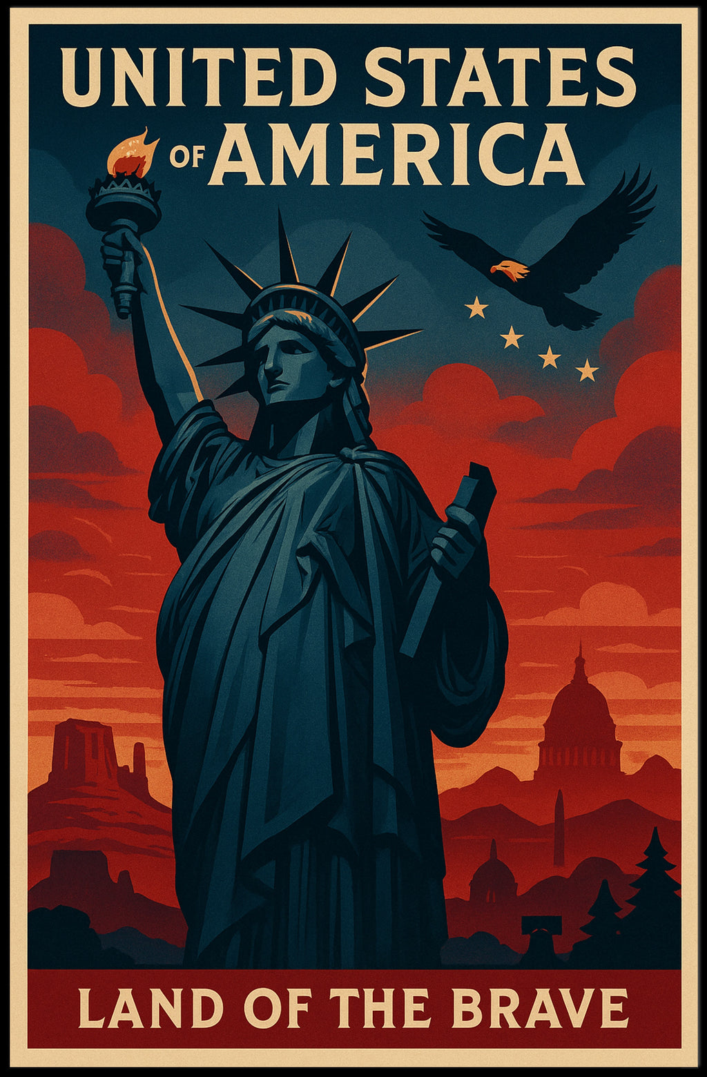Why it works: This poster blends decorative flair with narrative depth—its bold composition anchors a room while its storytelling elements spark conversation. Whether you’re decorating a home office, living room, or gifting to a travel-loving friend, the Land of the Brave Poster makes a memorable statement.