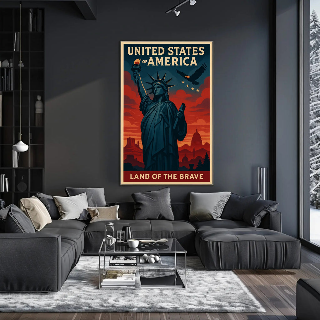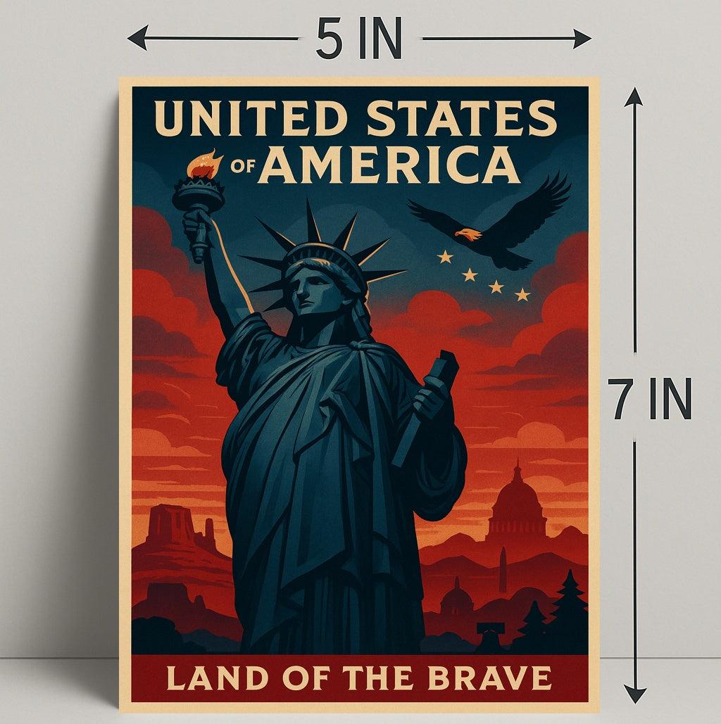 - Meaningful motifs: Iconic Liberty torch, flying eagle and layered landscape silhouettes evoke freedom, exploration and national pride—perfect as wall art or a thoughtful gift.