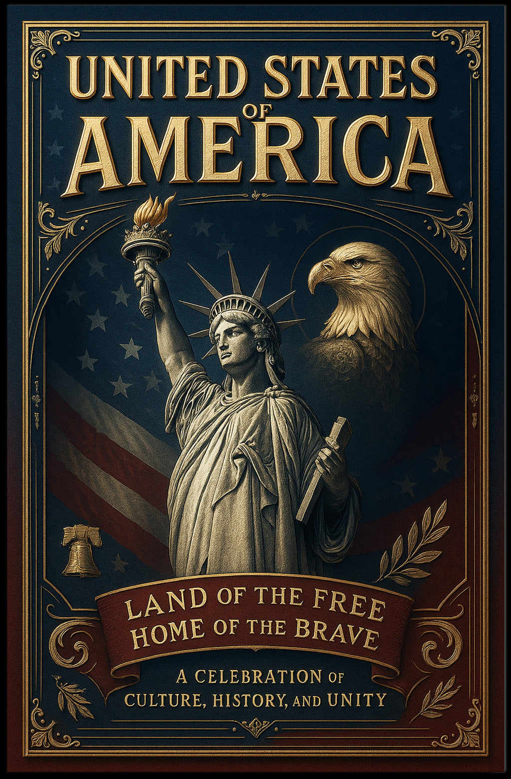 - Iconic imagery: Statue of Liberty, American flag motifs, liberty bell and laurel accents come together to evoke culture, history, and unity.