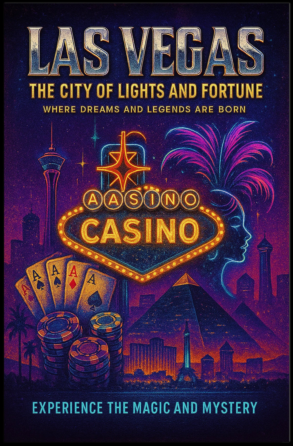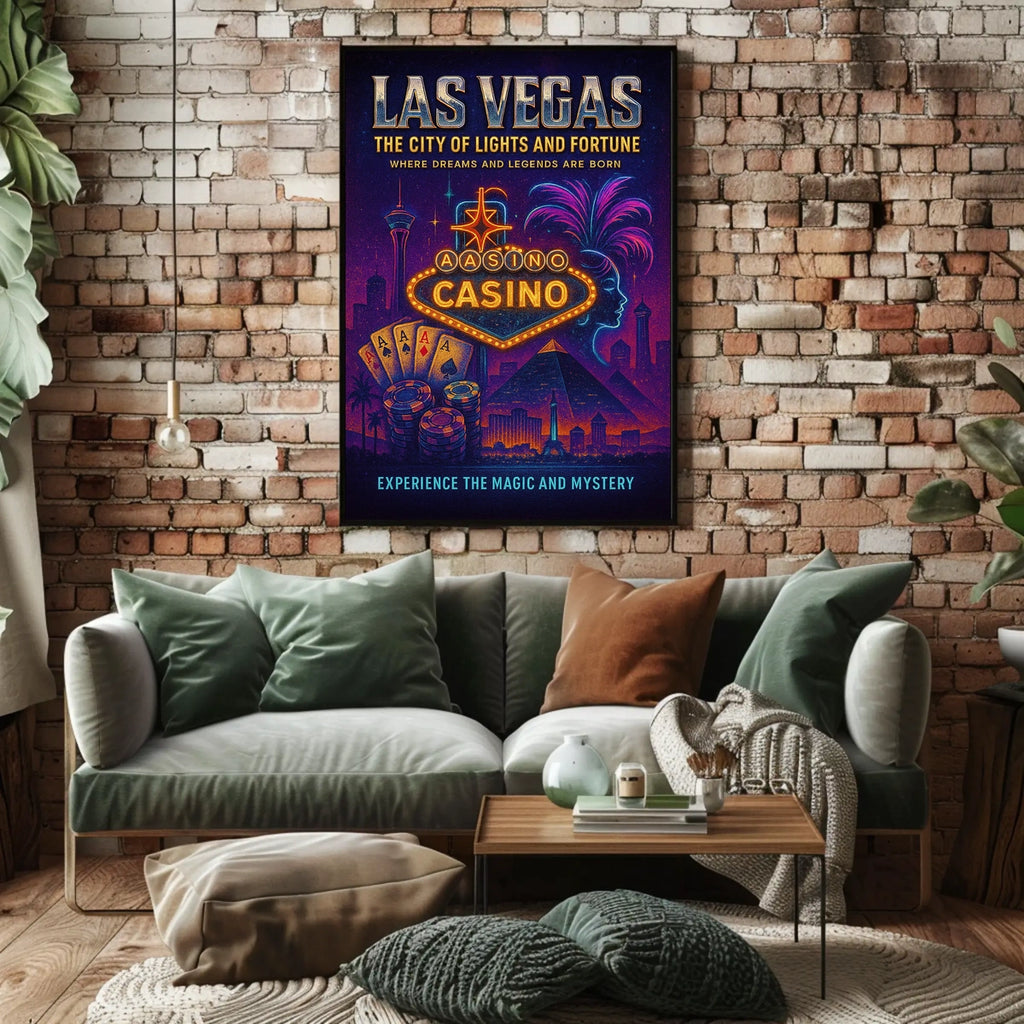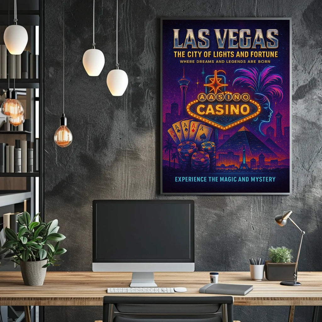 Capture the neon glamour of Las Vegas with this "City of Lights and Fortune" poster. Designed for decor lovers and wanderers, this art print adds a bold, travel-inspired statement to any room—perfect for living rooms, bedrooms, or offices. The high-quality print recreates the city’s electric vibe, making your walls feel like a stylish destination.