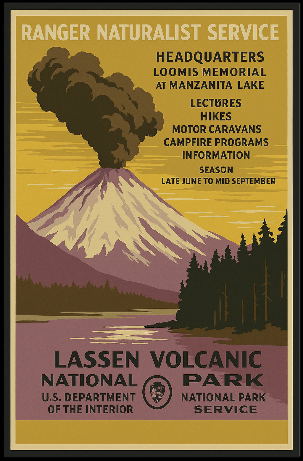 Celebrate Lassen Volcanic National Park with this Ranger Service poster. This art print blends rugged wilderness with archival-style appeal, making it a standout piece for decor lovers and wanderlust seekers. Whether you hang it in a living room, office, or study, it adds a calm, nature-forward vibe inspired by real-world scenery.