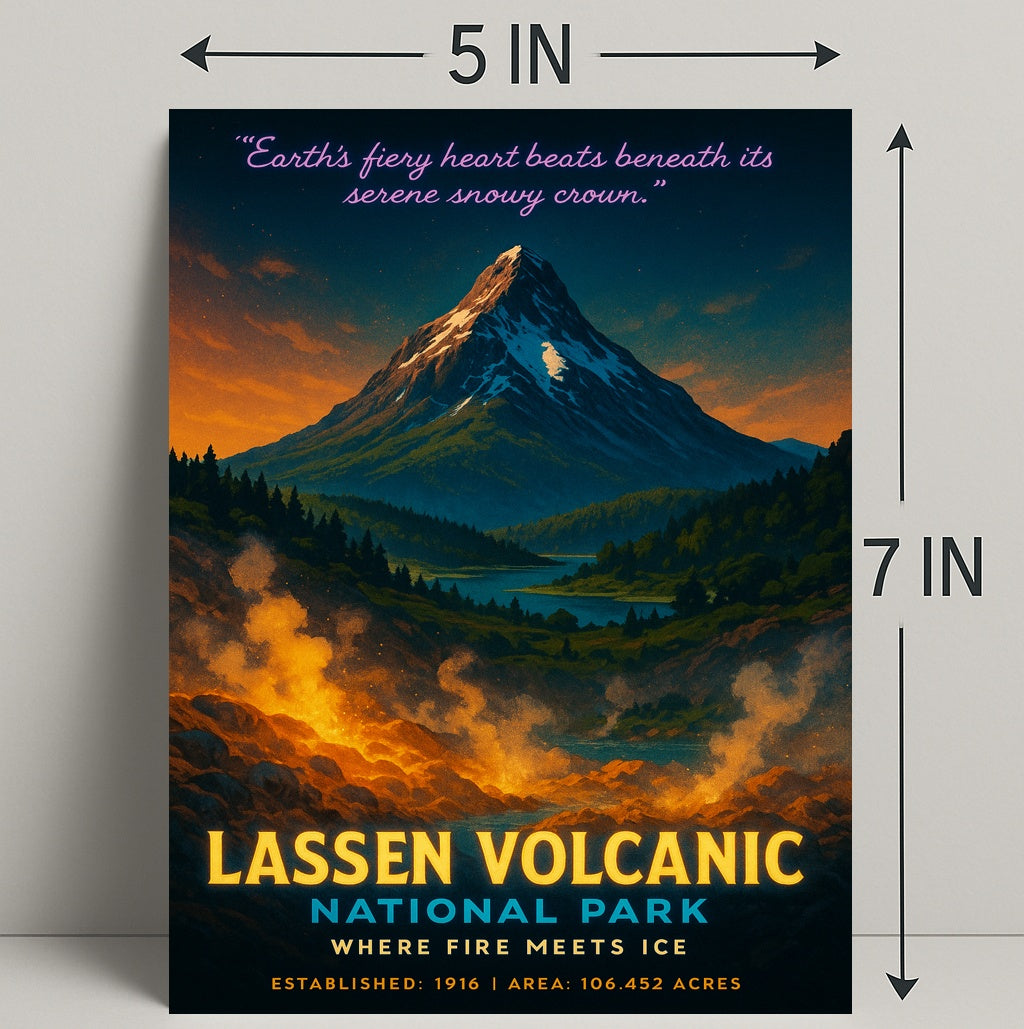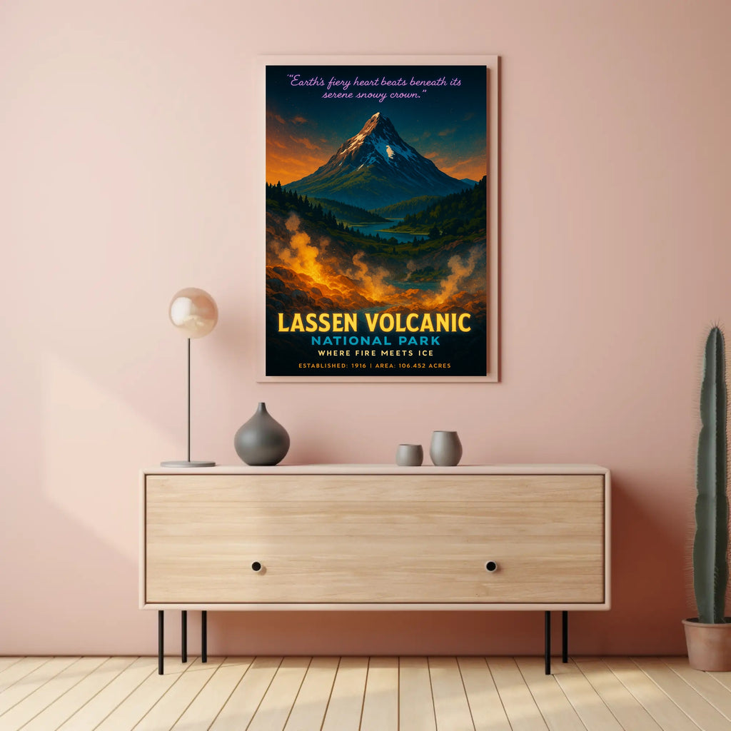 Transform your living space with the breathtaking Lassen Volcanic National Park Where Fire Meets Ice Poster. This stunning art print beautifully encapsulates the dramatic scenery of one of nature's most awe-inspiring locations. Perfect for decor enthusiasts and wanderlust spirits, this poster serves as a captivating reminder of the majesty of the great outdoors.