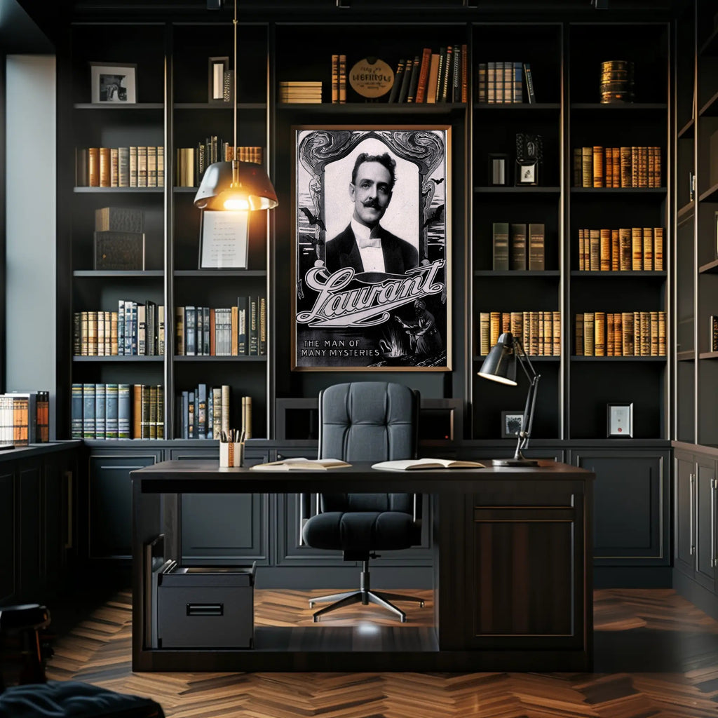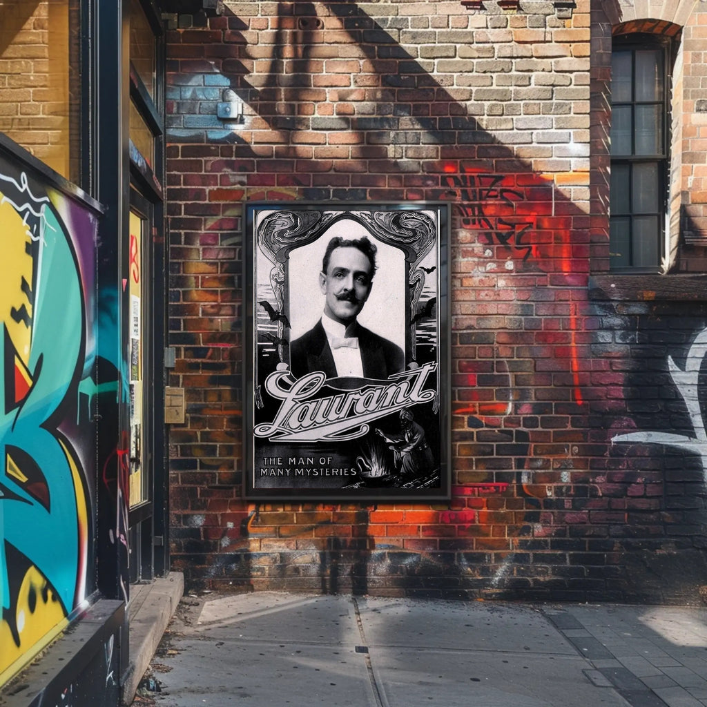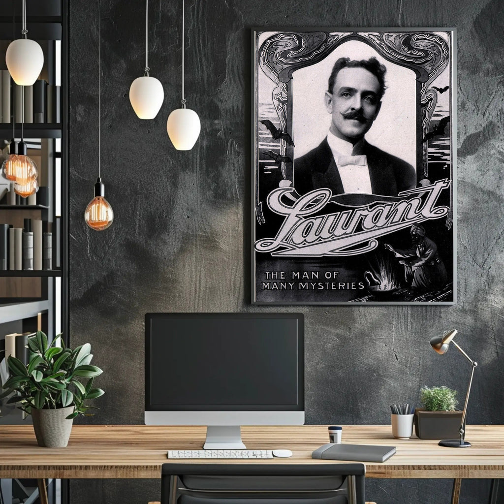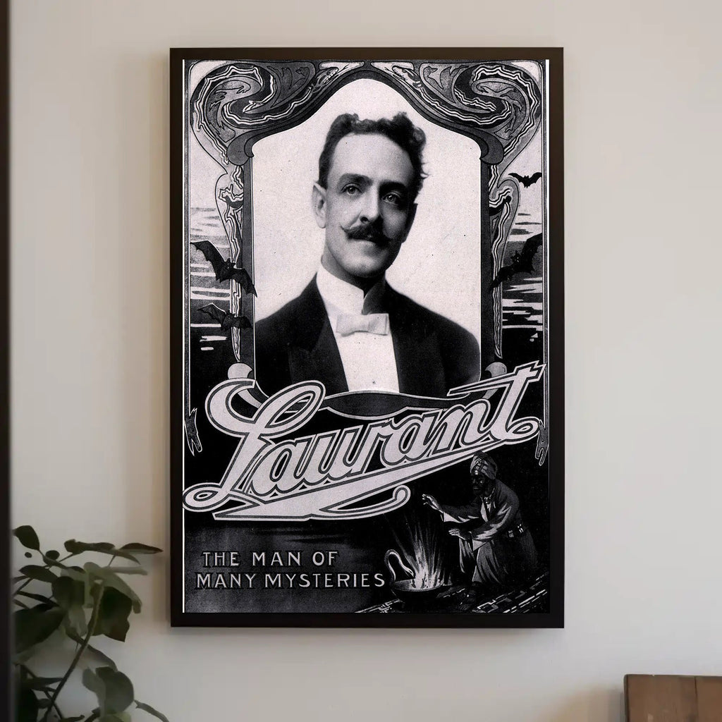 Why you'll love it: The poster's dramatic contrast and intricate border details draw the eye and anchor a room, while the large, stylized "Laurant" script and theatrical imagery add storytelling charm. Perfect for living rooms, home libraries, galleries or boutique spaces, this decorative poster blends cultural art and vintage appeal with modern interior sensibilities.