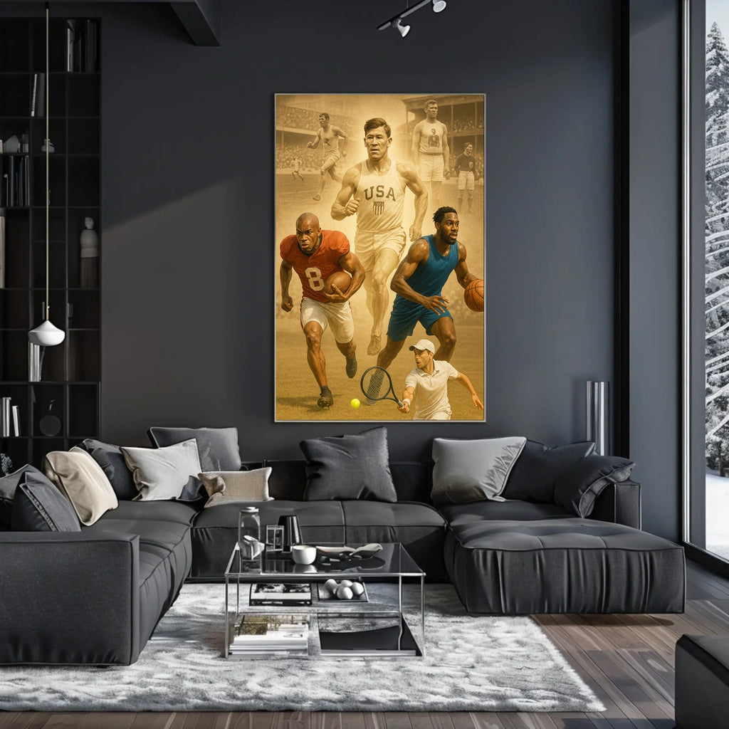 Iconic athletic collage across disciplines — a bold, eye-catching design that sparks conversations and highlights the evolution of sport.