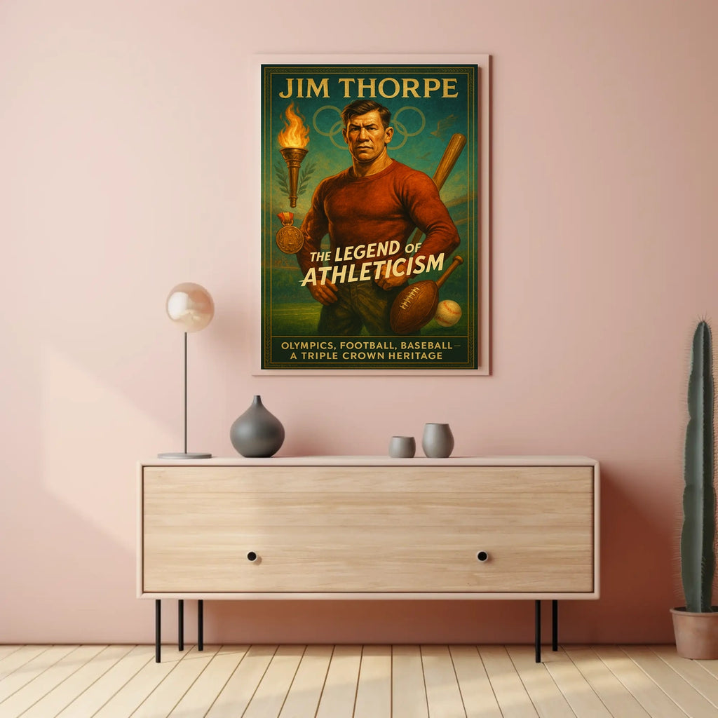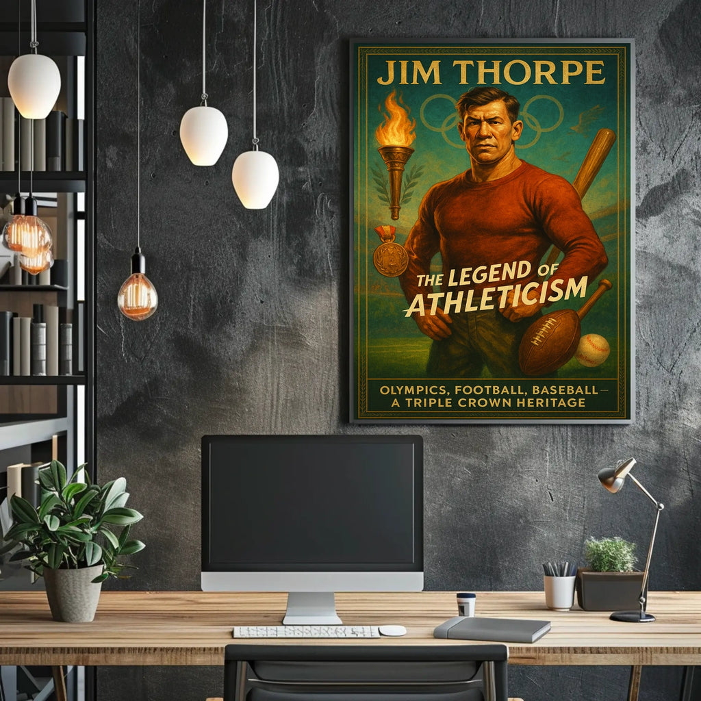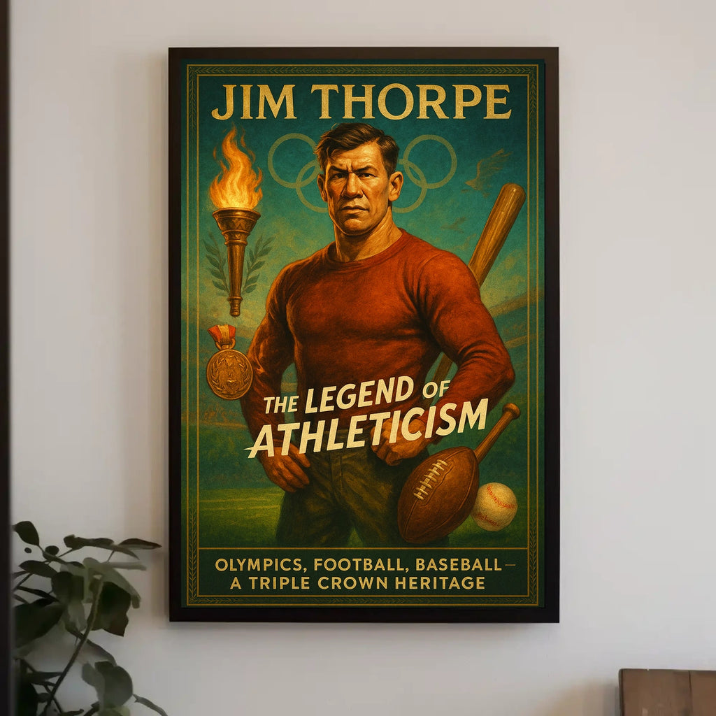 Celebrate the legendary journey of an elite athlete with this striking poster that honors his Olympic grit, football prowess, and baseball mastery. The Legend of Athleticism poster brings motivation and a timeless tribute to sports excellence into any space.