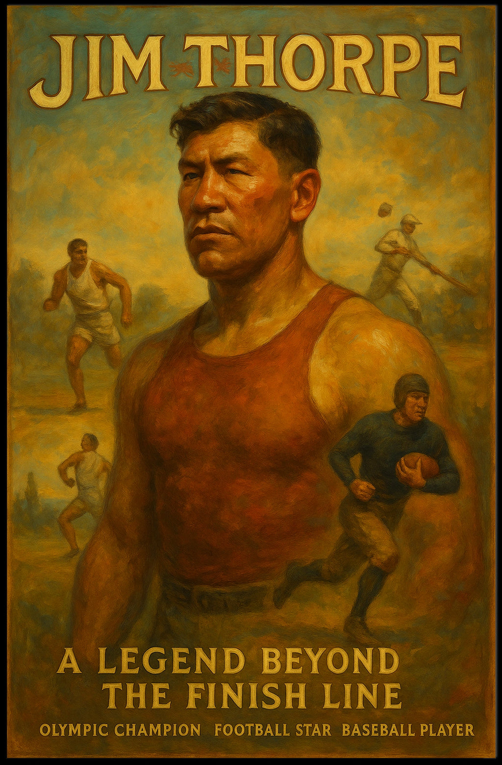 Celebrate the multi-faceted triumph of a true sports icon with the A Legend Beyond the Finish Line Poster. This striking artwork honors an Olympic champion, a football star, and a baseball player, weaving a narrative of perseverance, versatility, and enduring legacy that resonates with fans and collectors alike.