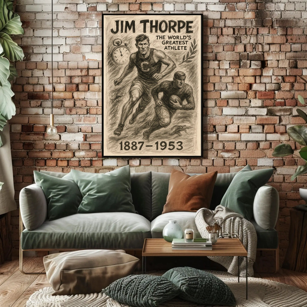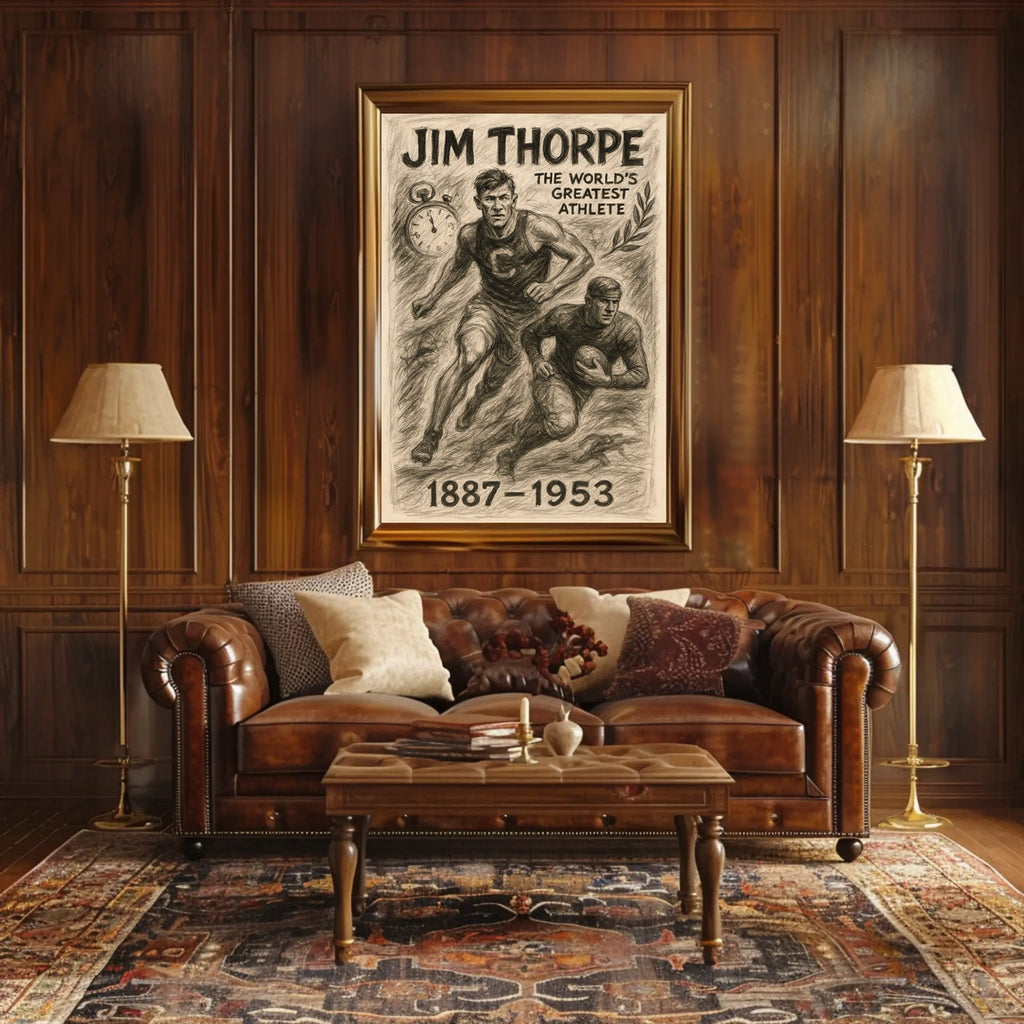 Iconic tribute to Jim Thorpe with a dynamic composition that highlights his versatility, turning admiration into daily motivation.
