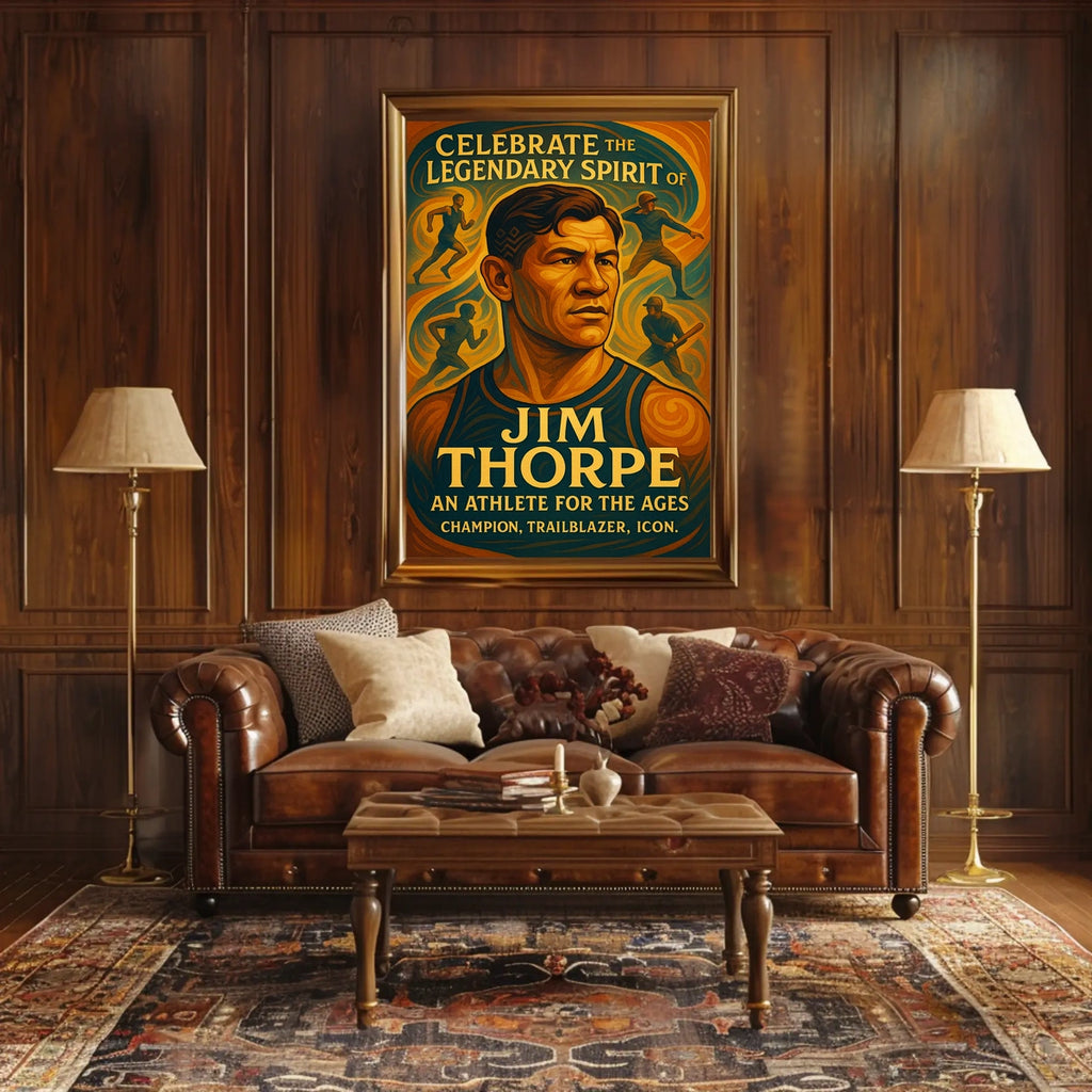 Celebrate the iconic athlete Jim Thorpe with a striking poster that captures the energy, resilience, and trailblazing determination of a true sports legend. This inspirational print brings motivation and history into any space, making it ideal for fans, collectors, and enthusiasts alike.