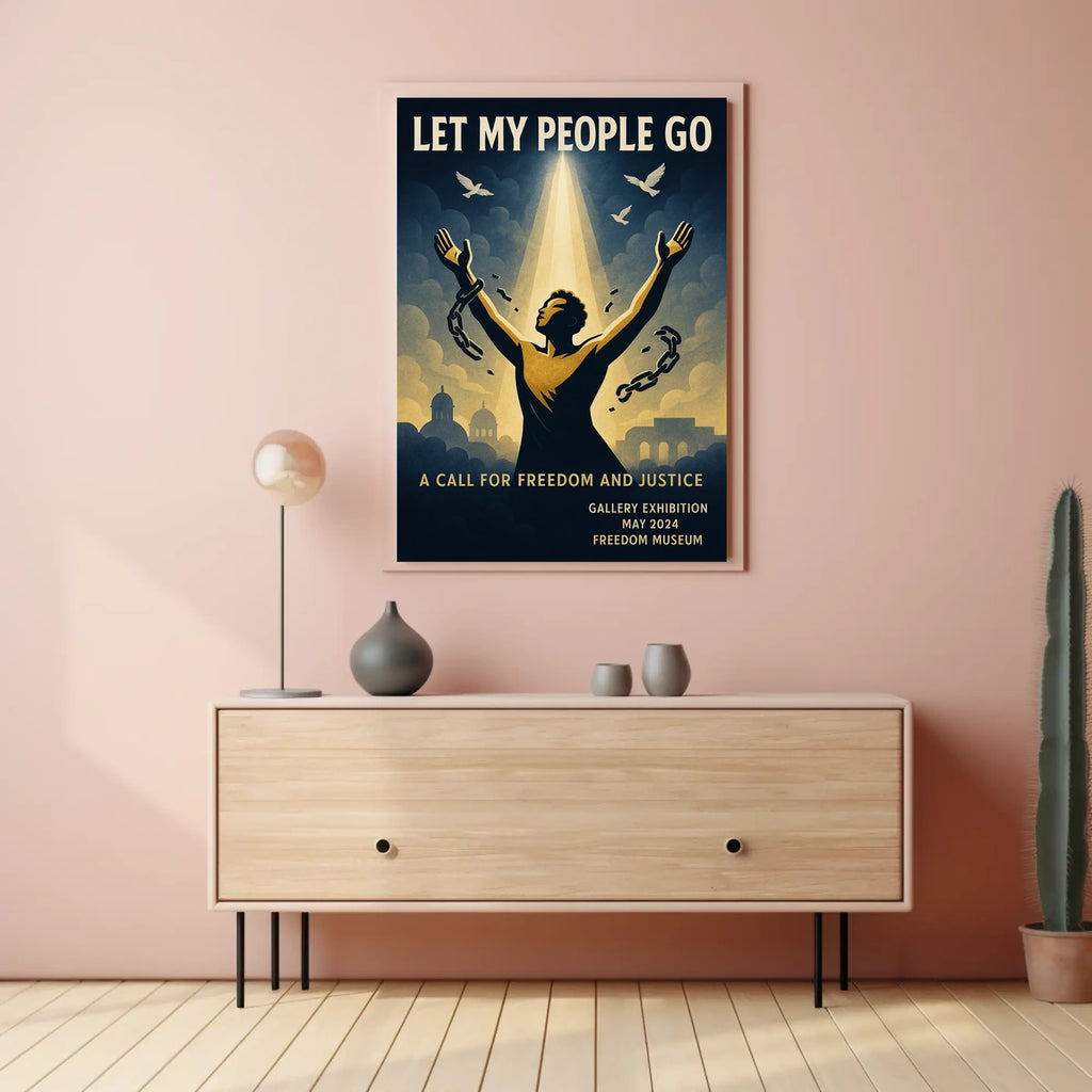 Capture the spirit of travel with this Let My People Go Gallery Exhibition poster. Designed for decor lovers and wanderlust spirits, it adds a charming touch of real-world scenery to any room—from living spaces to home offices—enhancing your wall with artistic storytelling.