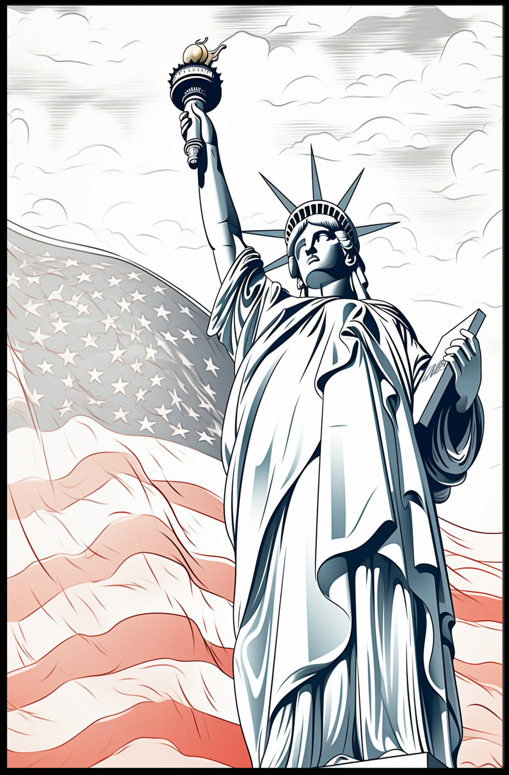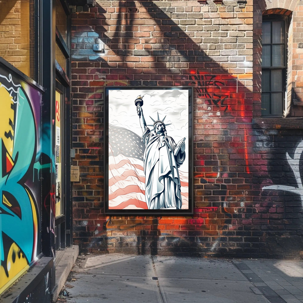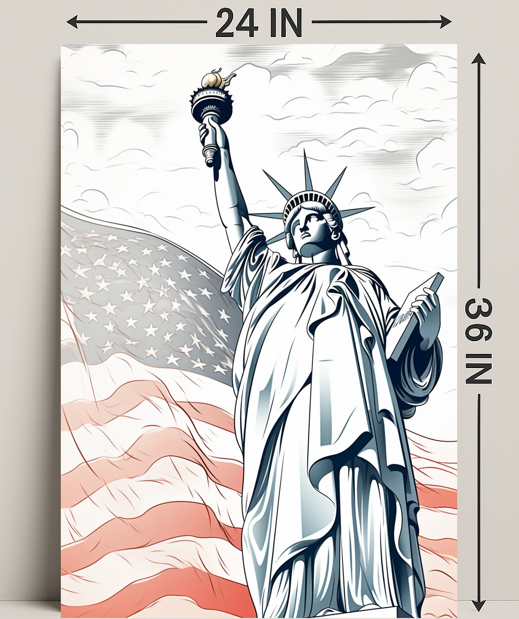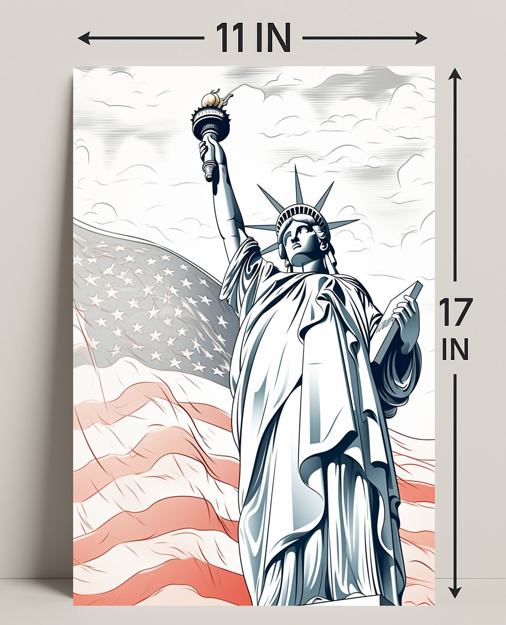 Celebrate freedom with striking wall art. The Liberty And Freedom Poster from PosterGoat transforms any room into a thoughtful, patriotic focal point—featuring a stylized, high-contrast depiction of the Statue of Liberty set against a sweeping American flag and soft cloudline accents. Its minimalist, artful aesthetic pairs perfectly with modern and classic interiors alike.