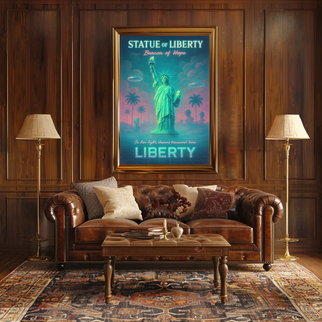 Liberty in Neon Dreams Futuristic Sci-Fi Poster