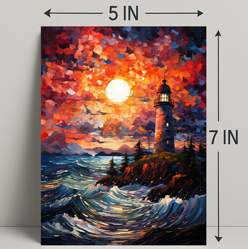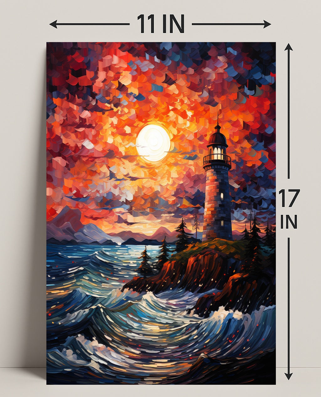 Ideal as a gift, souvenir, or standout piece in a themed gallery wall. The Lighthouse At Sunset Poster is an effortless way to add warmth, movement, and coastal charm to any room.