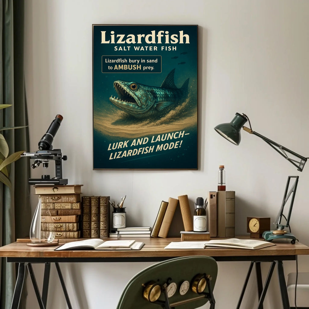 This poster captures the essence of Lizardfish Salt Water Predator, a piece built for decor lovers and wanderlust spirits. It brings a touch of real-world scenery into any room with a vibe that feels coastal and adventurous. The artwork blends vibrant color with lifelike detail, so it fits easily with both bold and calm interiors, from living rooms to bedrooms, and it's a perfect fit for Home & Garden decor.