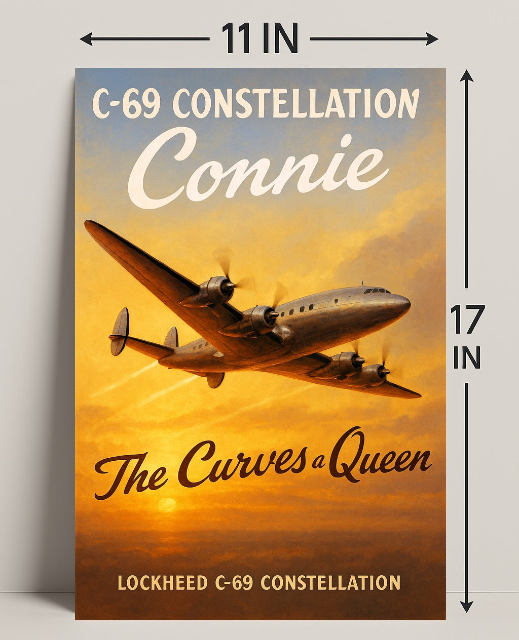 Ready to display: Order from PosterGoat today to add a nostalgic centerpiece to your home or office. Enhance your decor with a timeless poster that celebrates classic aircraft design — buy now and let Connie take flight on your wall.
