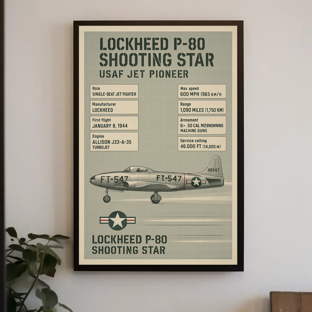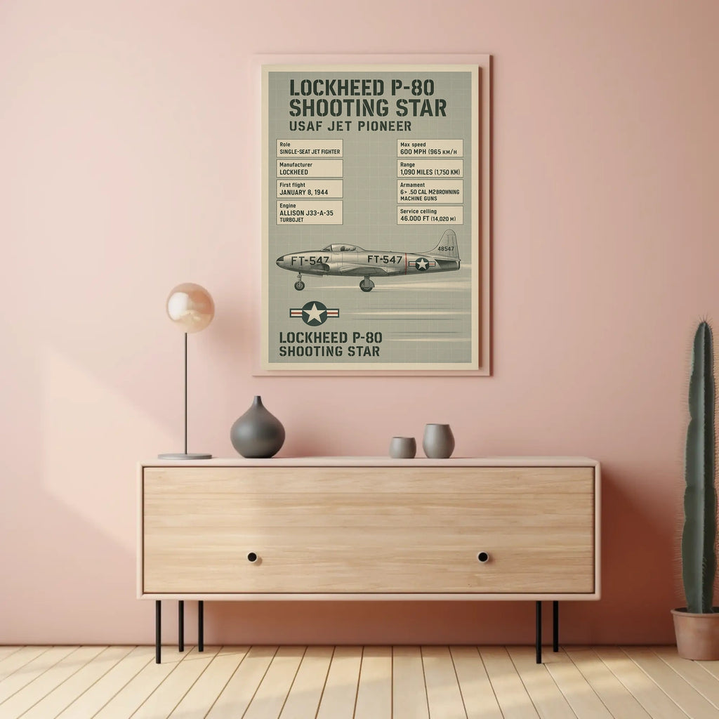 This P-80 Shooting Star poster brings a slice of aviation history into everyday life. With clean lines and evocative scenery, it feels both modern and nostalgic—perfect for anyone who loves art, travel, or collecting meaningful wall pieces. The print is designed to complement a variety of rooms, from living spaces to home offices, adding character without overwhelming your existing decor. It's a natural fit for Home & Garden decor and any poster collection. No fuss, just a striking focal point you can enjoy daily.