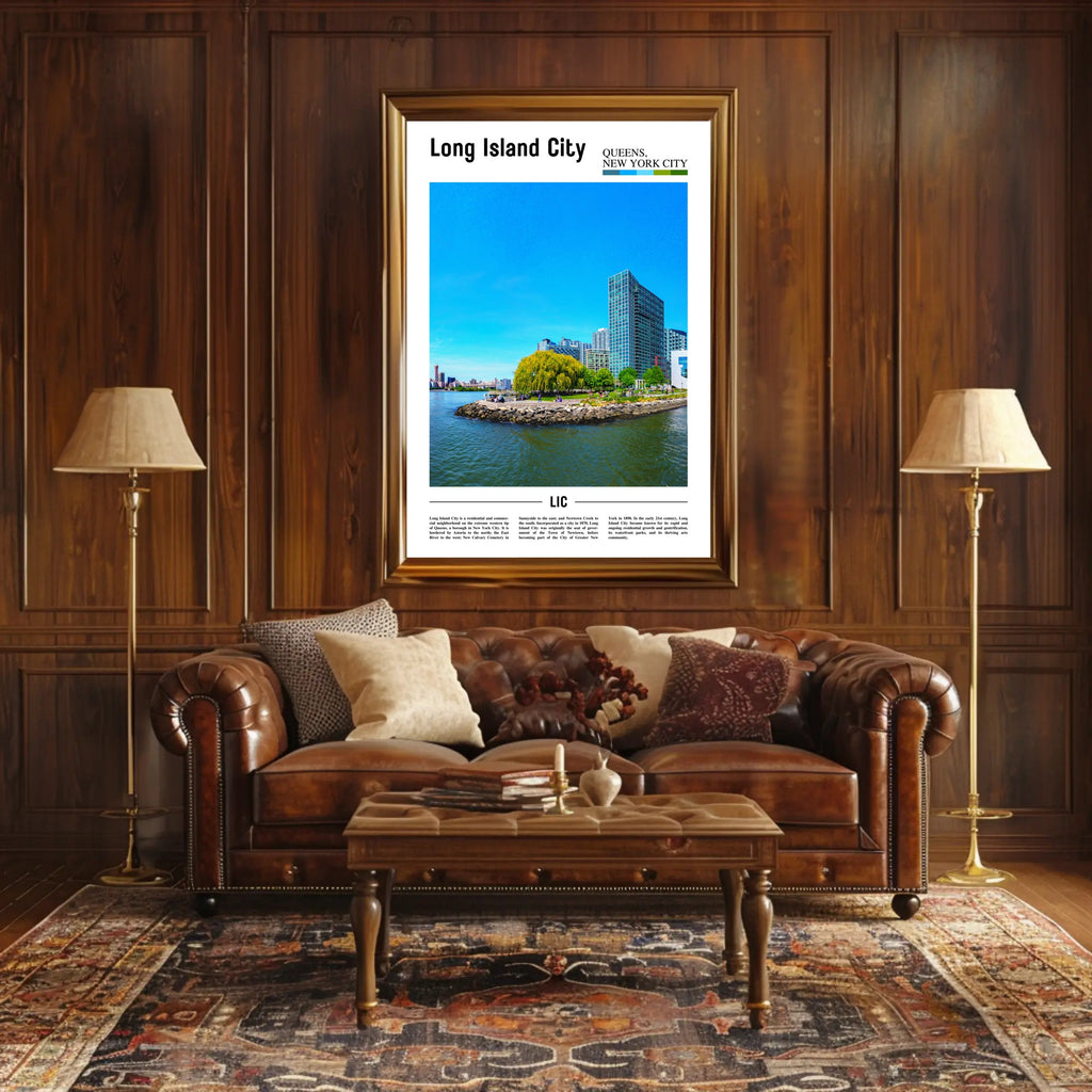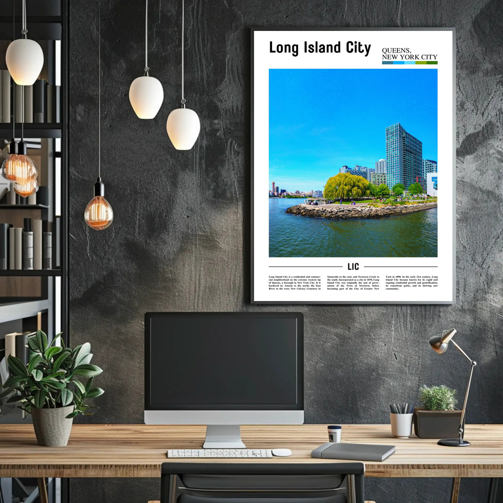 This Long Island City Waterfront View Travel Poster is printed to showcase architectural artistry and scenic design while bringing peaceful greenery and urban charm into your space. Add a touch of New York City art to your walls—order now from PosterGoat and transform your room with a sweep of waterfront beauty.