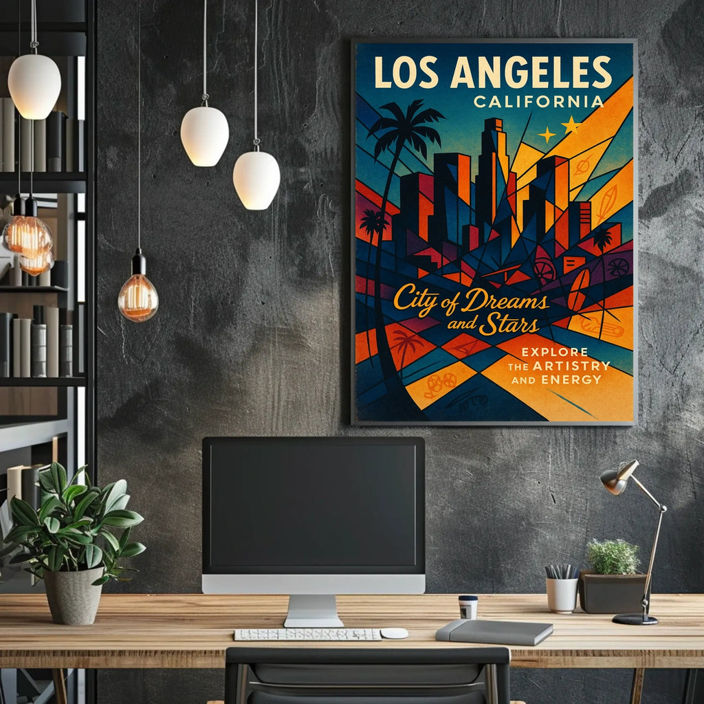 This poster captures the essence of Los Angeles City of Dreams and Stars. Designed for decor lovers and wanderlust spirits, this art print adds charm to any room with visuals inspired by real-world scenery.