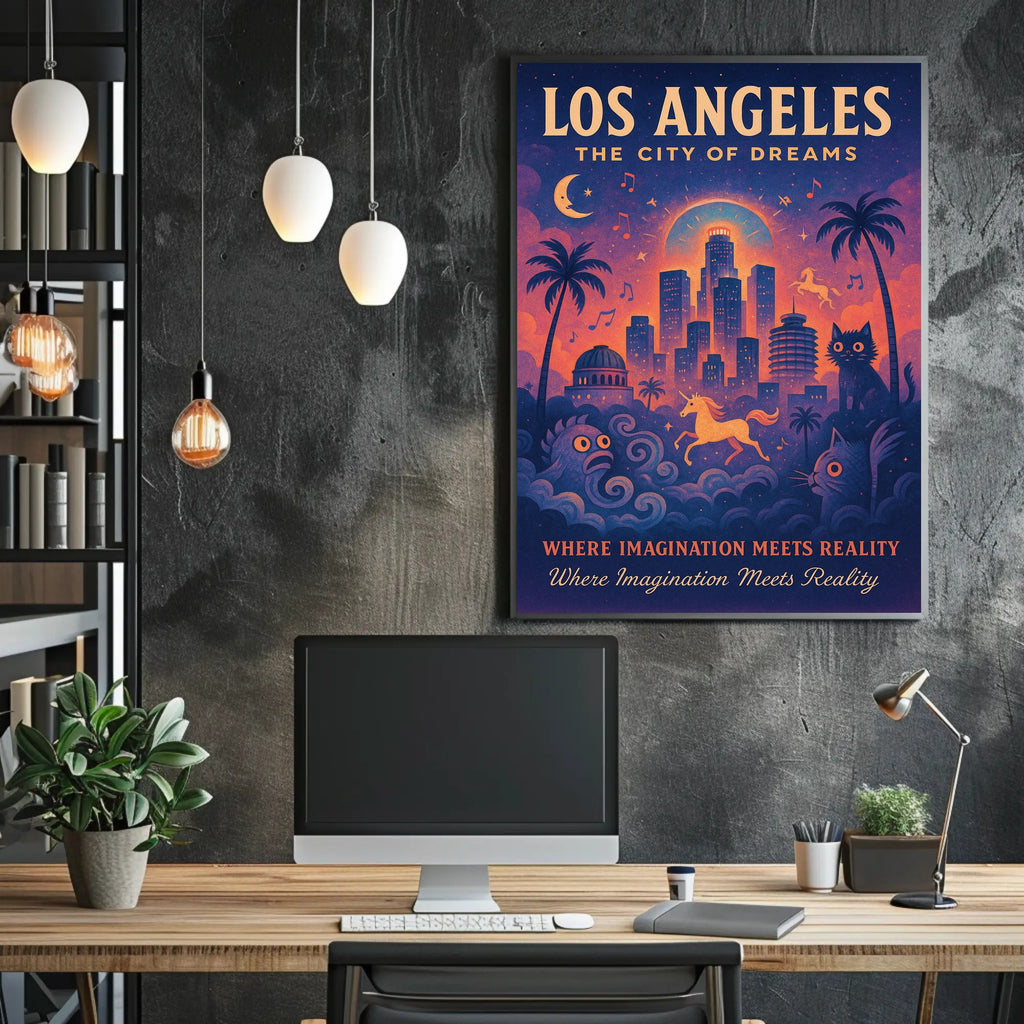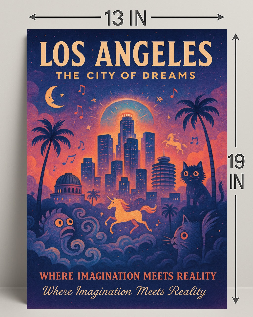 Elevate your home with this enchanting Los Angeles poster that captures dreams and imagination in every detail. Don’t miss the chance to own a piece of art that celebrates the spirit of LA—order yours today and bring the City of Dreams into your home!