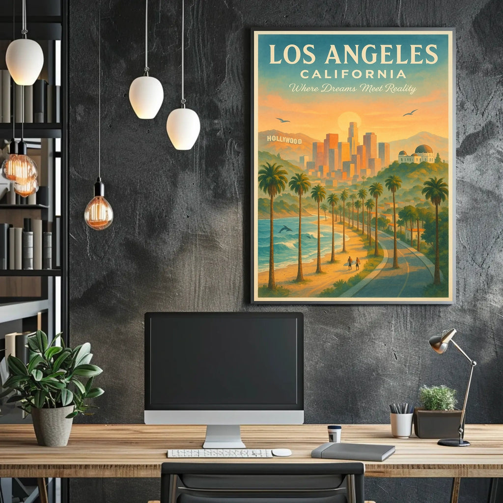 Printed with precision and made to inspire, this artwork is more than decoration—it’s a conversation piece that connects the energy of Los Angeles, culture, and style. Bring Los Angeles Where Dreams Meet Reality into your home, classroom, or office today and let your walls tell a powerful story.