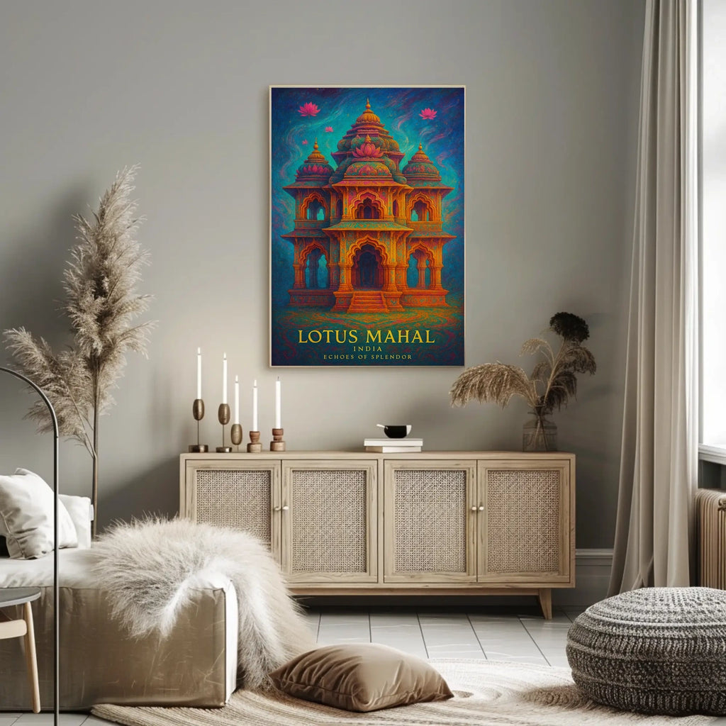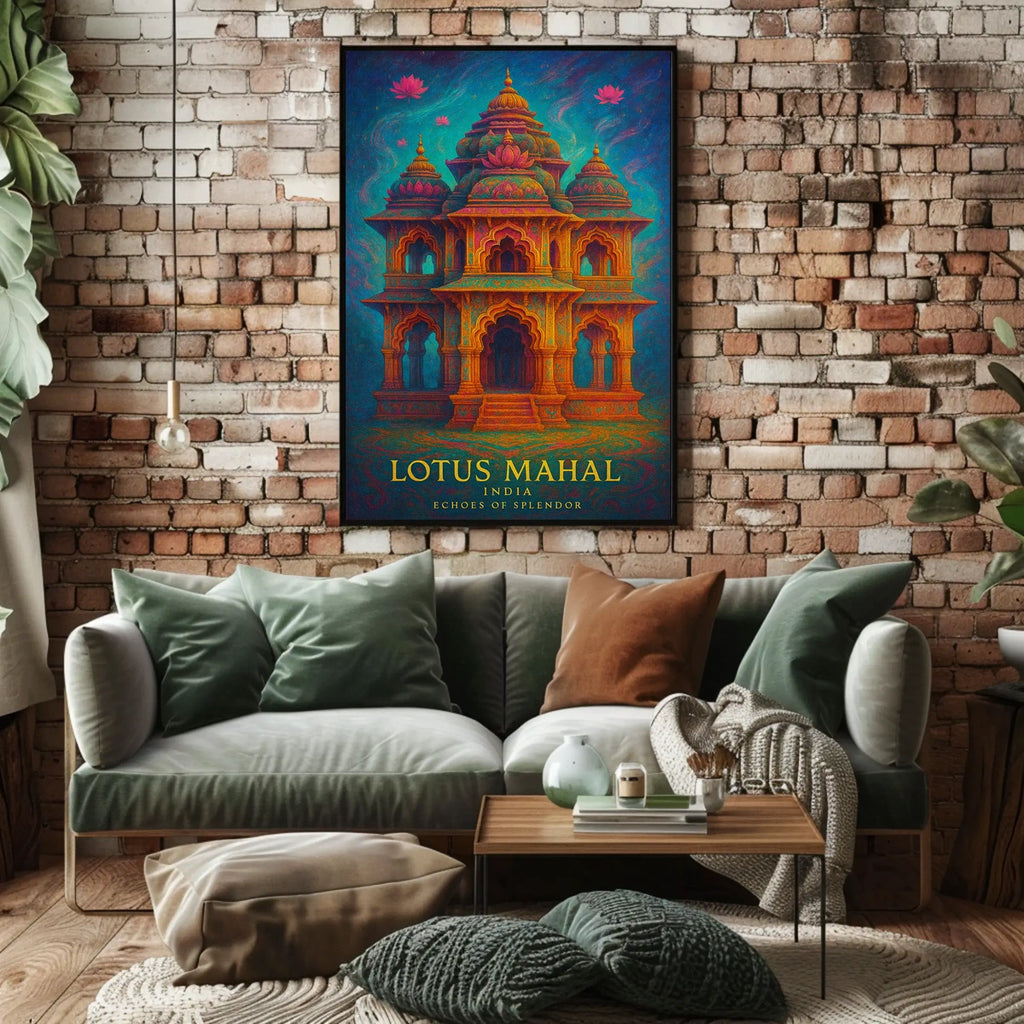 Capture the mystique of distant palaces with the Lotus Mahal Echoes of Splendor Poster. This art print is designed for decor lovers and wanderlust spirits, elevating any room with lush tones and tranquil composition. Printed on high-quality stock, it brings bold color and serene imagery to living spaces, bedrooms, or creative areas.