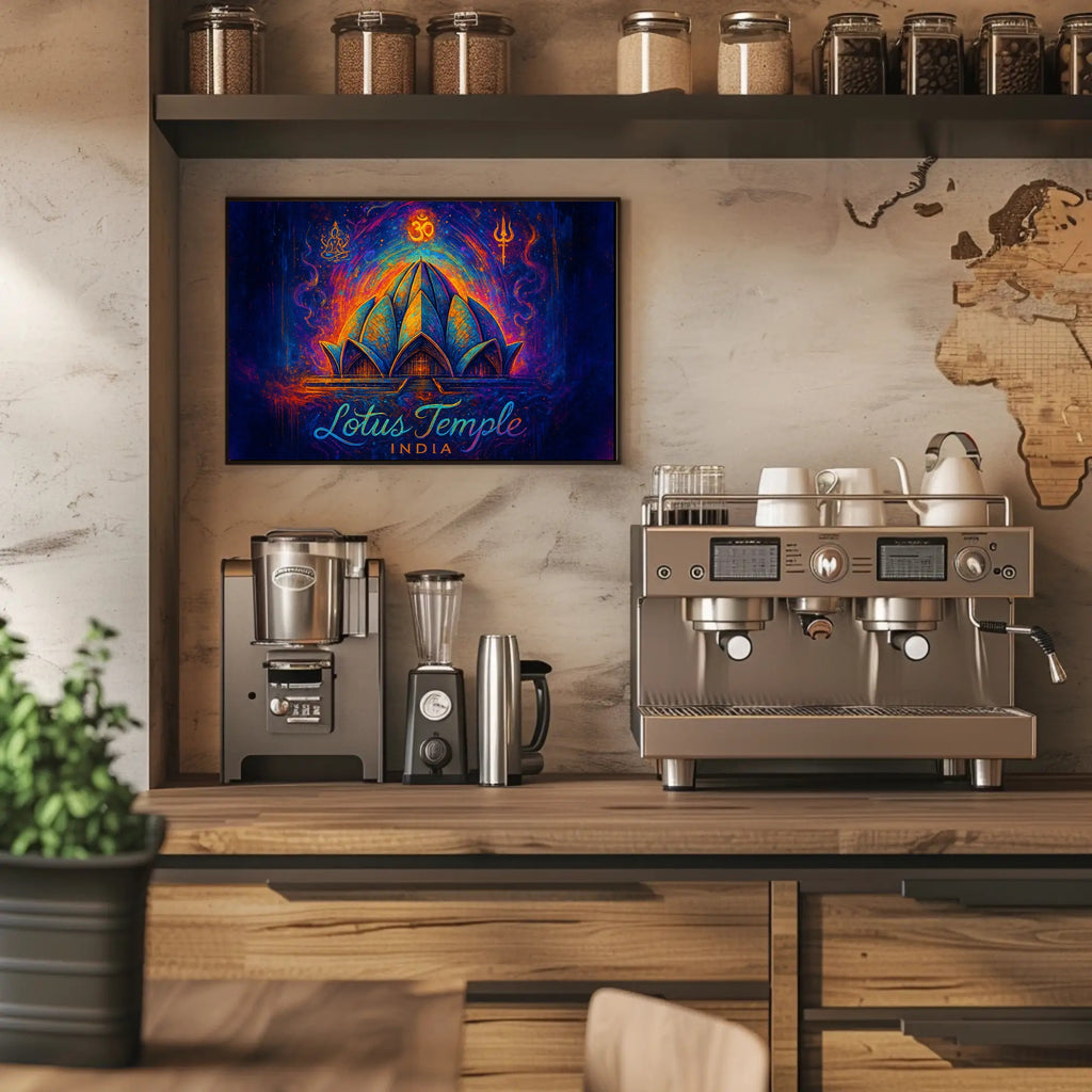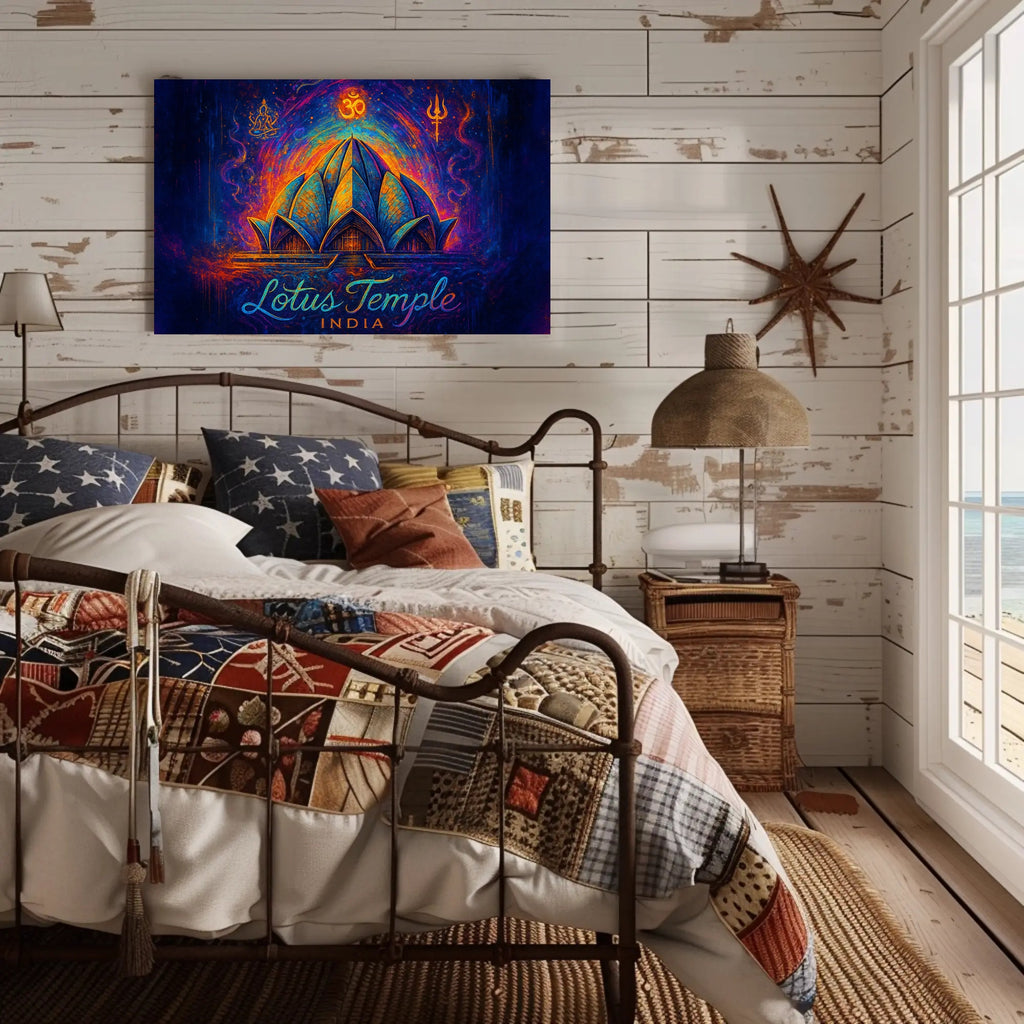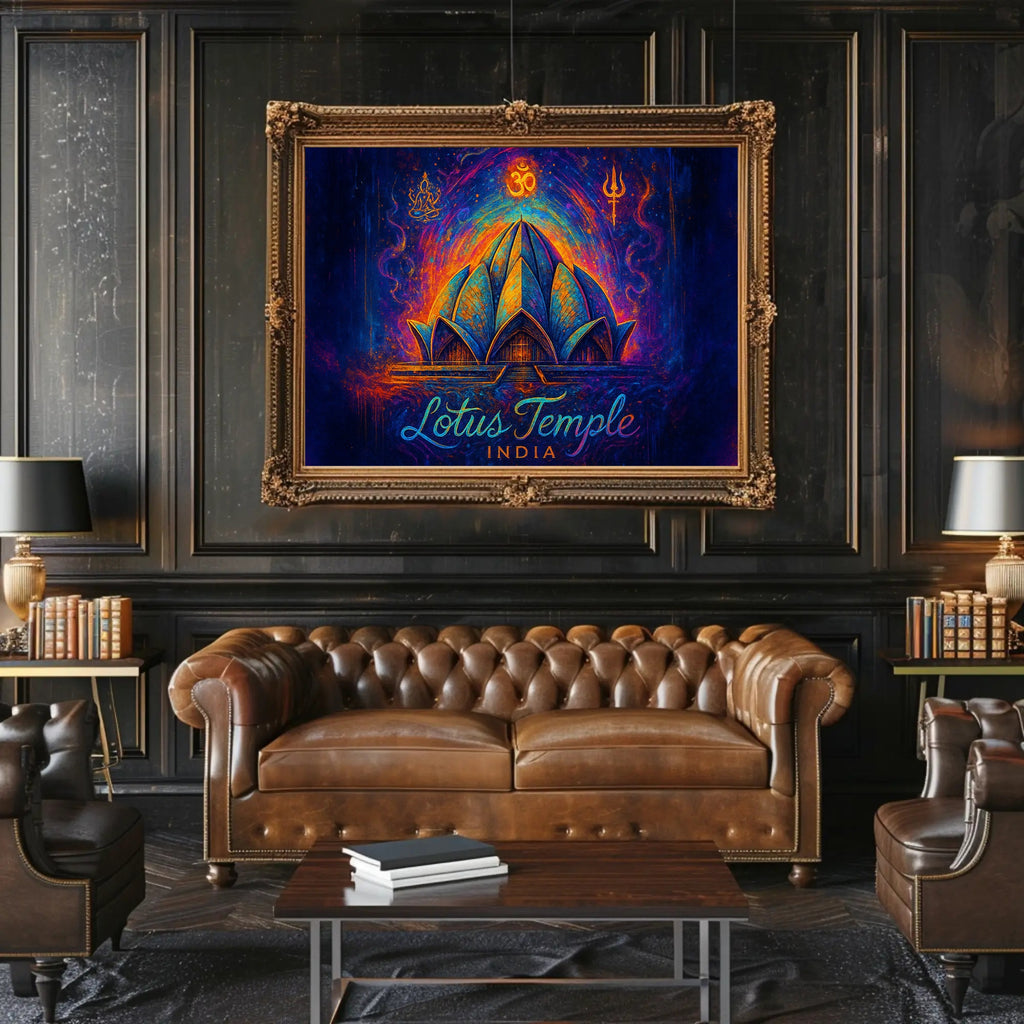 This Lotus Temple poster balances bold, gallery-ready color with serene architectural lines — a conversation piece that also brings calm and cultural depth to your space. The textured brushwork and glowing accents look stunning framed or unframed and pair effortlessly with industrial, boho, or modern décor palettes.