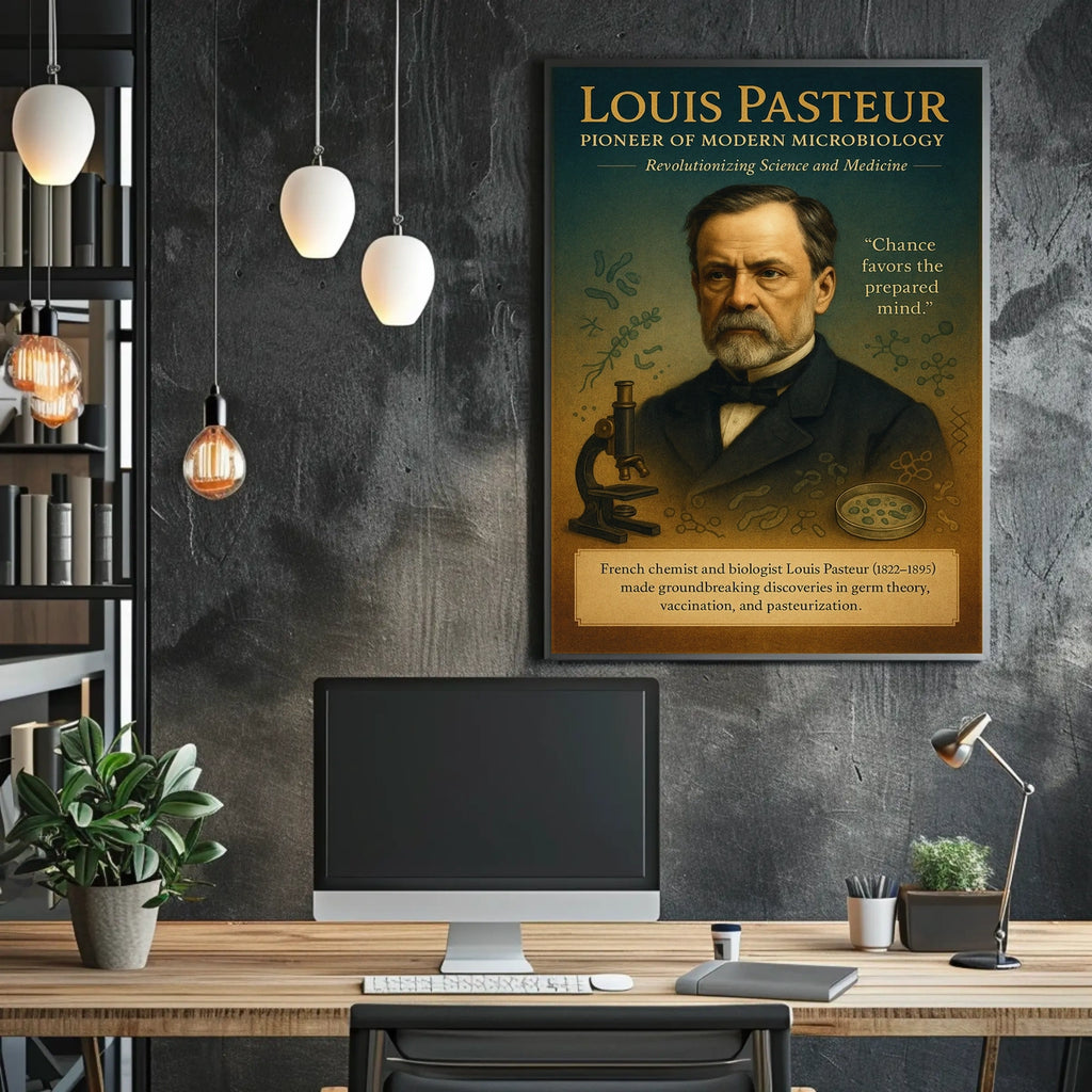 - A timeless tribute to Pasteur and modern microbiology that suits living rooms, hallways, or study areas.