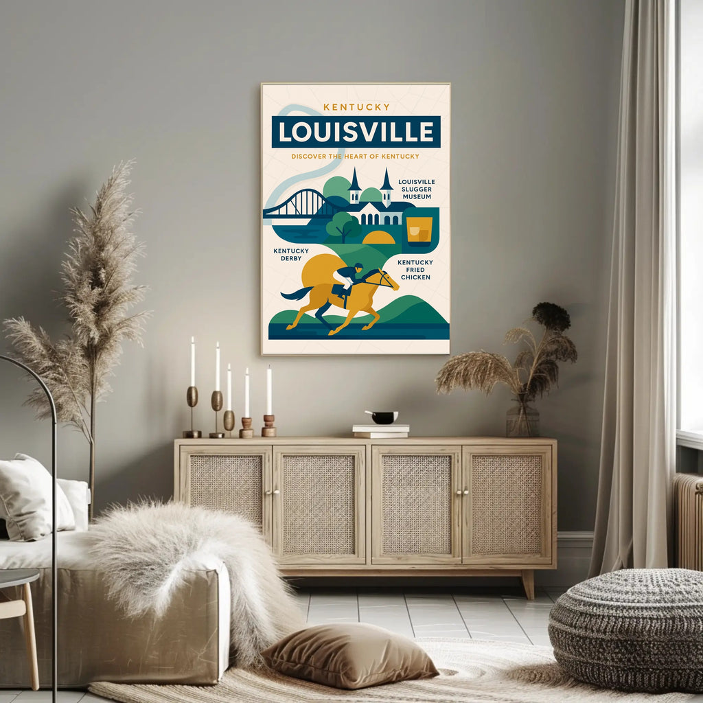 Whether you're decorating a modern apartment, gifting a Louisville enthusiast, or curating a travel-themed gallery wall, this modern travel poster captures the city's charm with collectible style. Add the Louisville Charm poster to your cart and bring a bold piece of Kentucky culture to your walls today.