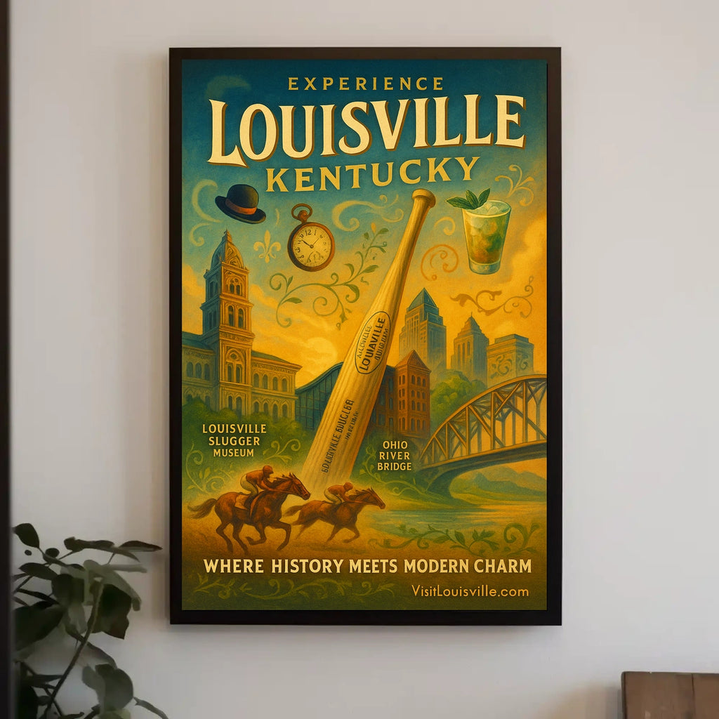 Immerse your space in the warm, nostalgic color palette that harmoniously blends tradition with contemporary charm. This poster invites exploration and appreciation of Louisville’s diverse attractions, making it a standout piece for homes, offices, classrooms, or creative studios.