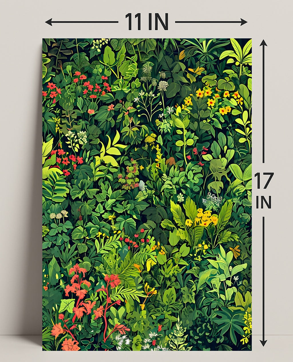 Immerse yourself in the vitality of nature with the striking Lush Botanical Illustration Poster from PosterGoat. This stunning poster features a rich tapestry of vibrant plants and flowers, capturing the essence of a lively garden scene. Perfect for any space, this artwork not only enhances your decor but also brings the invigorating beauty of the outdoors into your home.