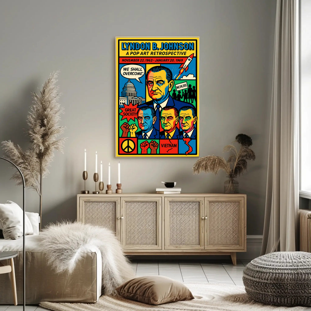 This poster captures the essence of Lyndon B. Johnson A Pop Art Retrospective. Designed for decor lovers and wanderlust spirits, this art print adds charm to any room with visuals inspired by real-world scenery.