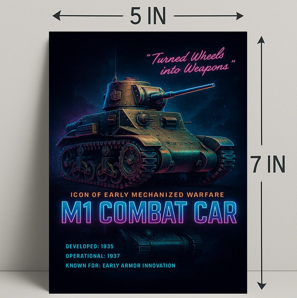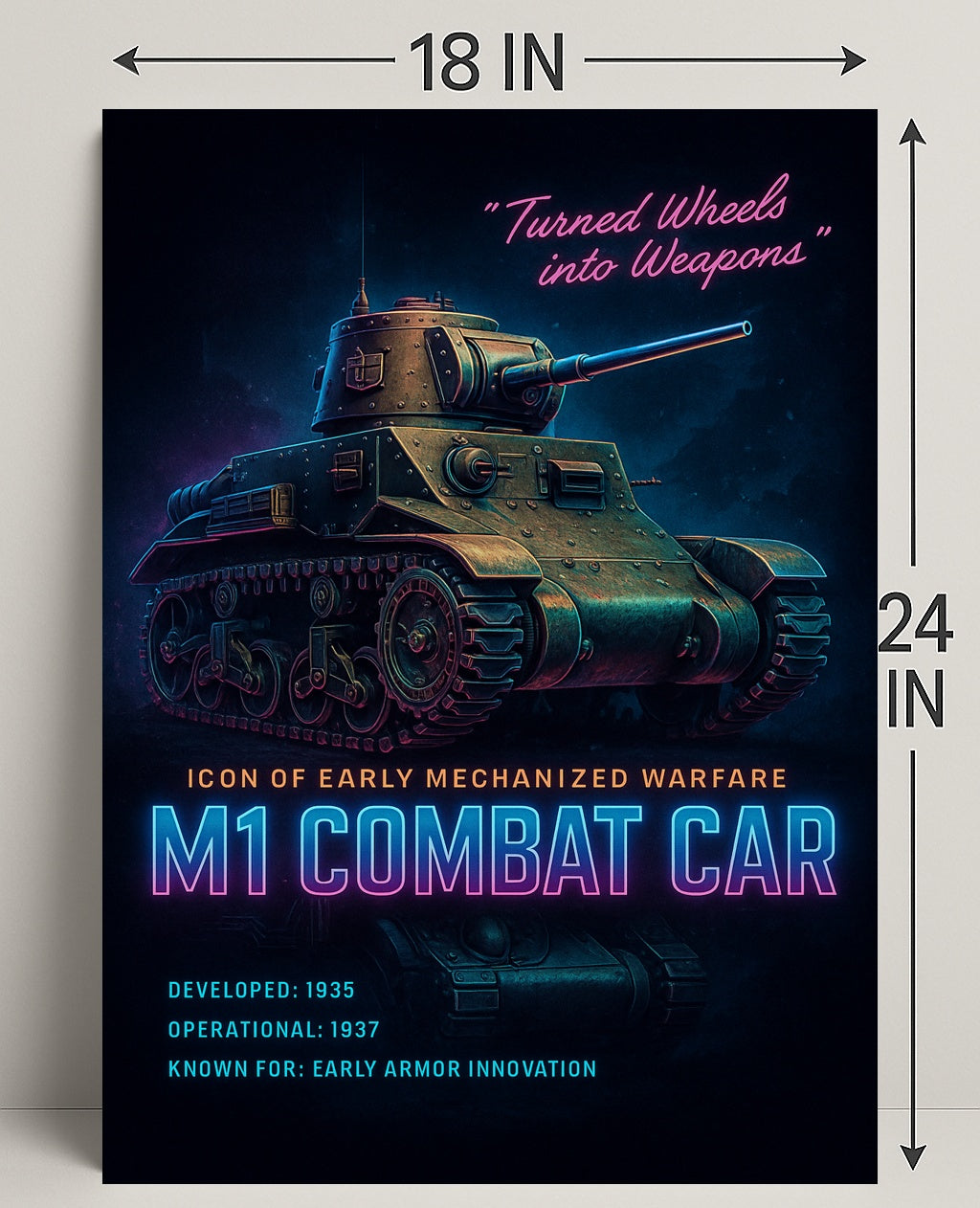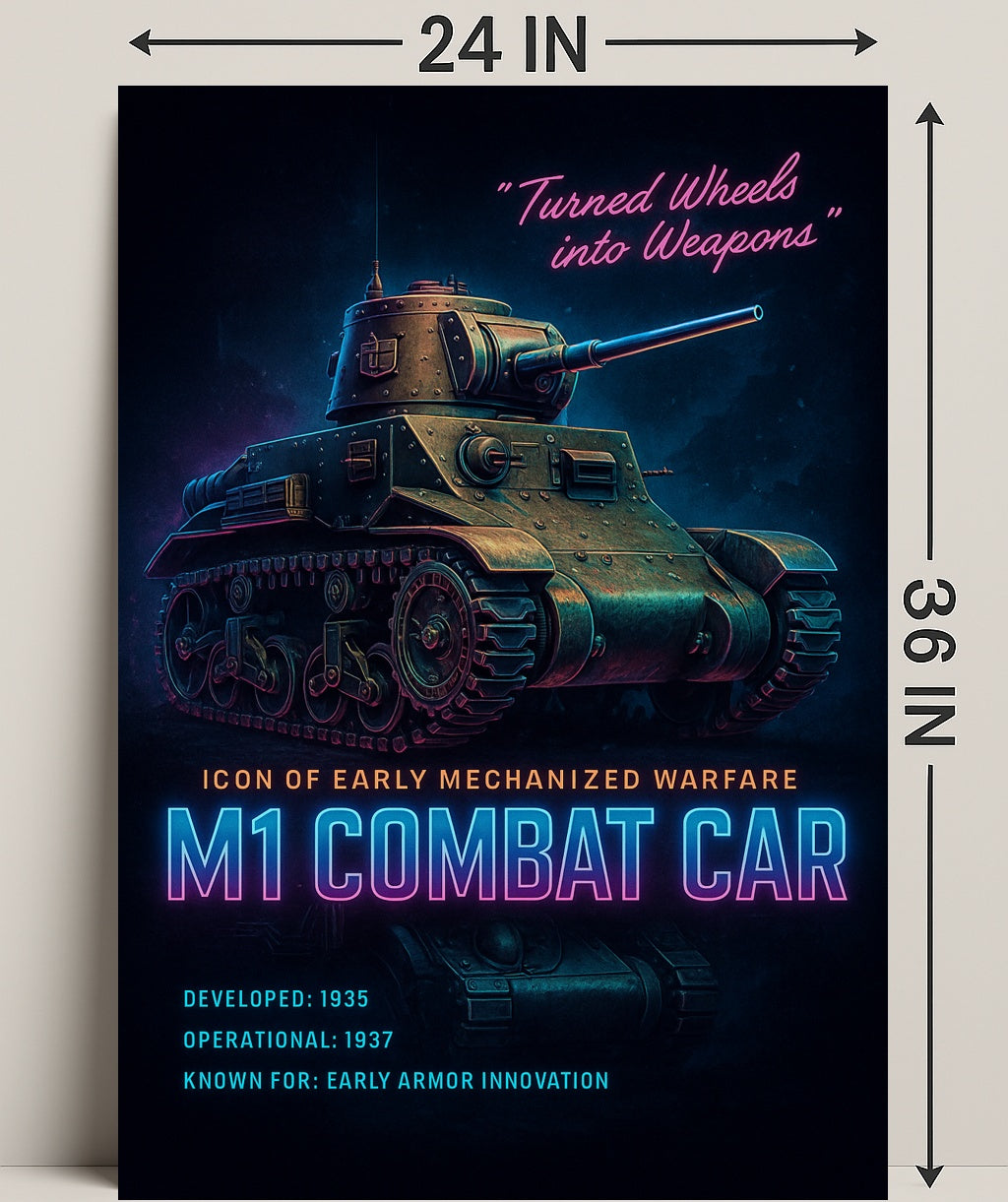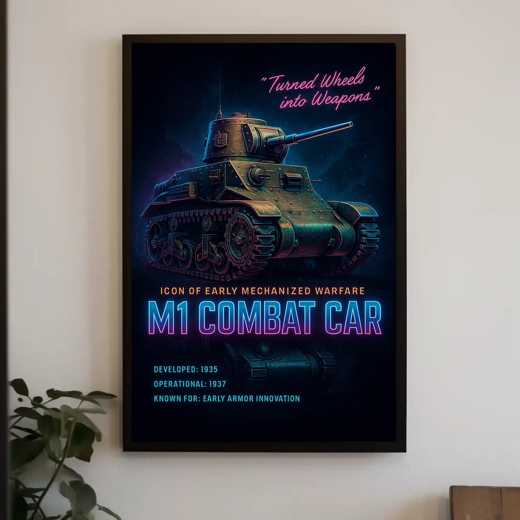 Buy now to bring the M1 Combat Car’s dramatic presence to your wall — order your PosterGoat print today and transform your room with a piece of mechanized warfare history.