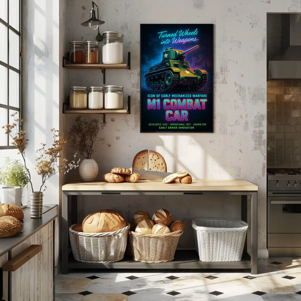 Add the M1 Combat Car poster to your collection today from PosterGoat — enhance your space with history and bold design.