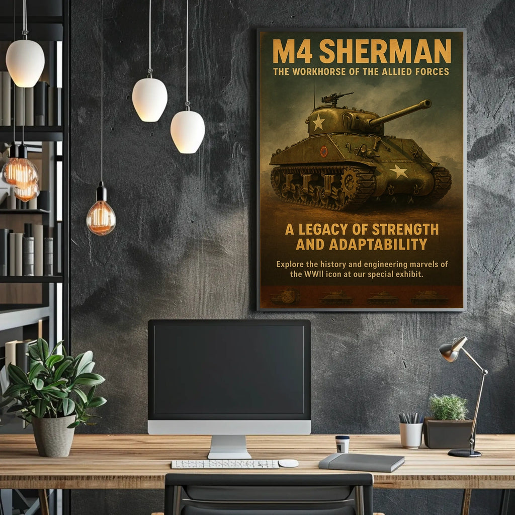 Celebrate a landmark of World War II history with the M4 Sherman: The Workhorse of the Allied Forces Poster. This art print blends real-world scenery-inspired visuals with modern color, turning a simple wall into a story of resilience and adventure. Designed for decor lovers and wanderlust spirits, it adds character to any room while sparking conversation.