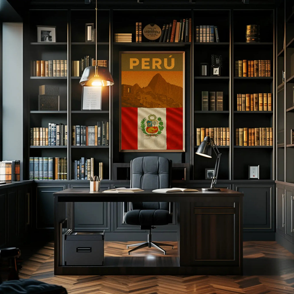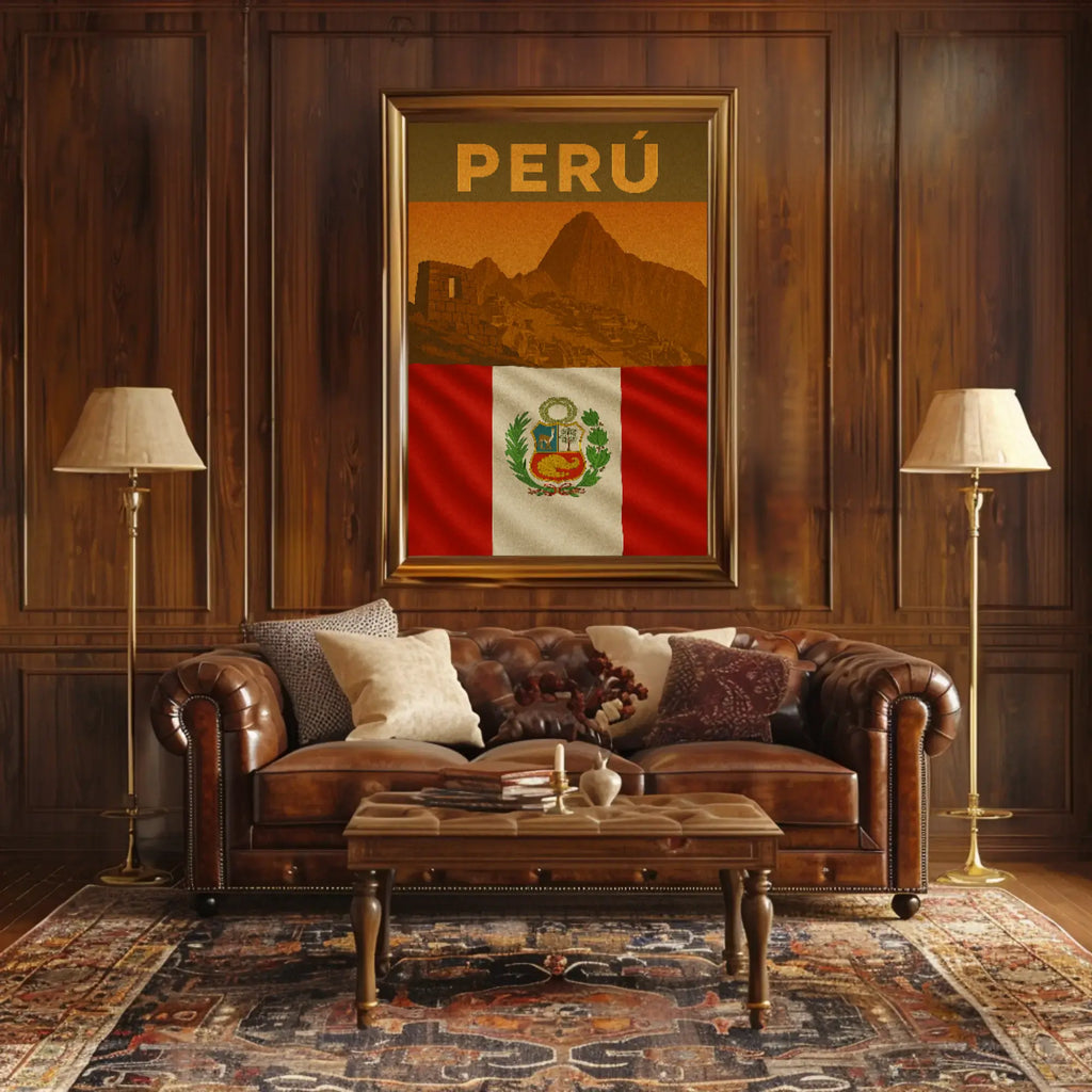 - High-impact visual: Bold “PERÚ” header, detailed mountain silhouettes, and a lifelike flag panel give the poster striking presence on any wall.