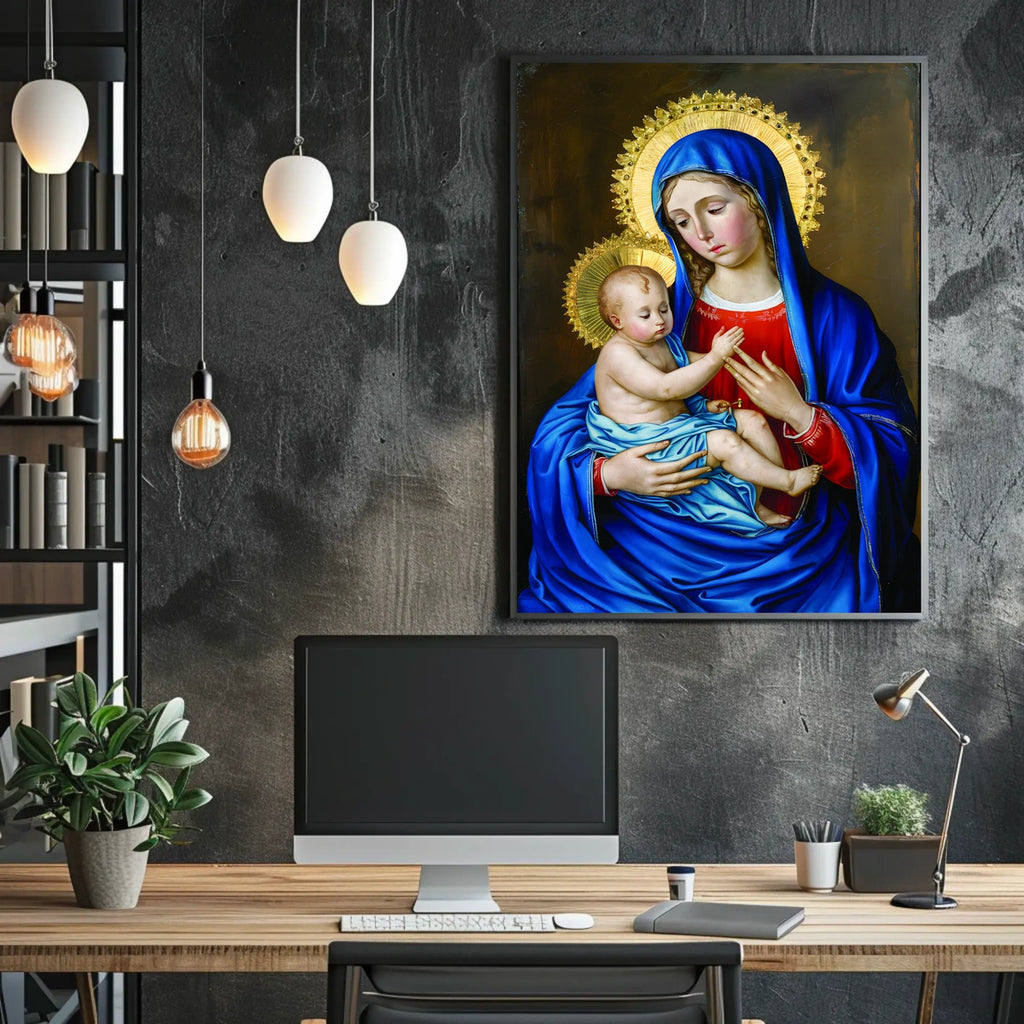 Bring a touch of reverent beauty and worldly charm to your space with this Madonna and Child poster. Its timeless appeal pairs with modern decor to inspire daily reflection—shop now and elevate your walls today.