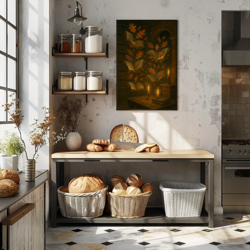 Perfect for living rooms, study spaces, library nooks, or offices, this enchanting piece blends vintage charm with fantasy allure. The timeless wooden furniture, aged books, and mystical atmosphere invite viewers to step into a world of wonder and storytelling—an ideal addition to home decor and a thoughtful gift for any admirer of magical realms.