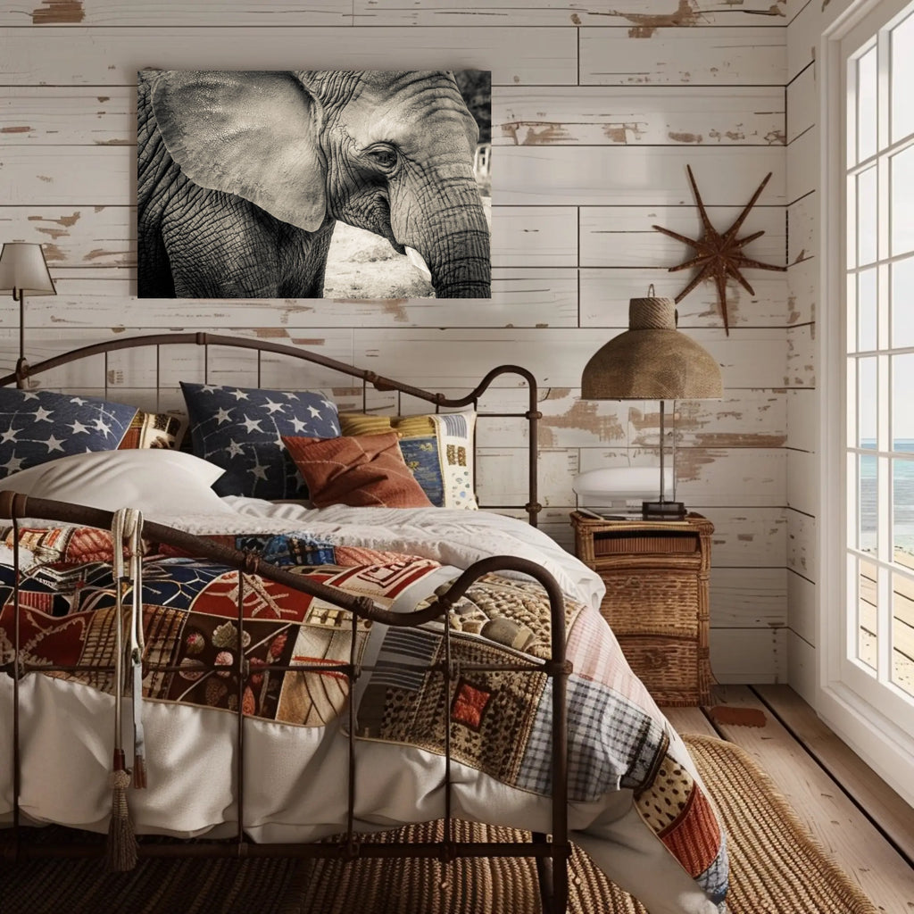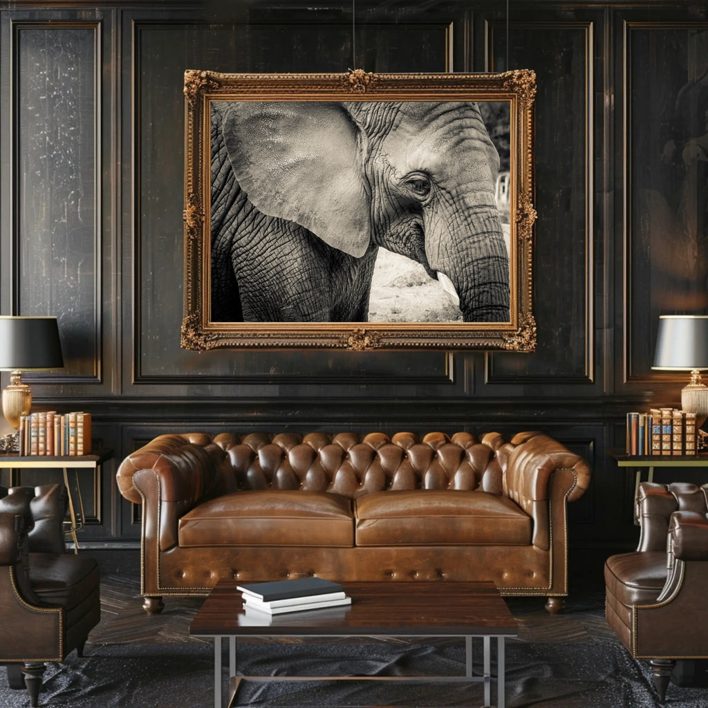 Perfect for animal photography enthusiasts, contemporary home decor, safari-themed rooms, or anyone seeking an elegant nature print that highlights intricate wrinkles and textured print detail.