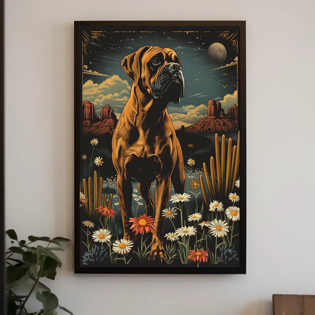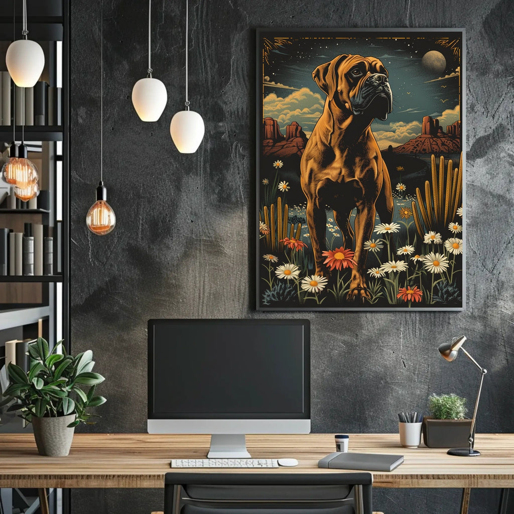 Whether displayed in your living room, bedroom, or workspace, this poster brings a touch of desert majesty and canine spirit to any environment.