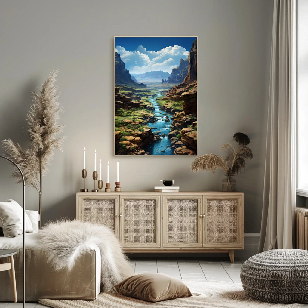 This poster captures the essence of Majestic Canyon Landscape. Designed for decor lovers and wanderlust spirits, this art print adds charm to any room with visuals inspired by real-world scenery.