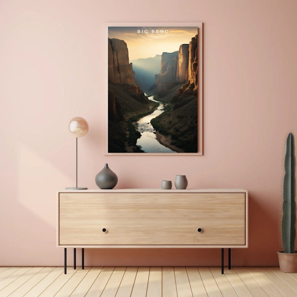 - Title: Big Bend Canyon Travel Poster — Majestic Canyon of Big Bend Poster