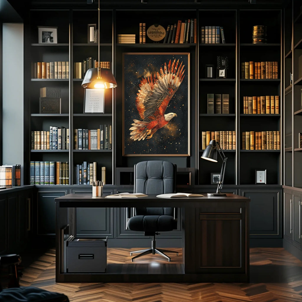 Experience the bold fusion of wildlife art and cosmic imagery—the perfect piece for those who appreciate a modern illustration, fantasy art aesthetic, and patriotic decor. Transform your home, classroom, or office with this captivating visual masterpiece and let your walls tell a powerful story.