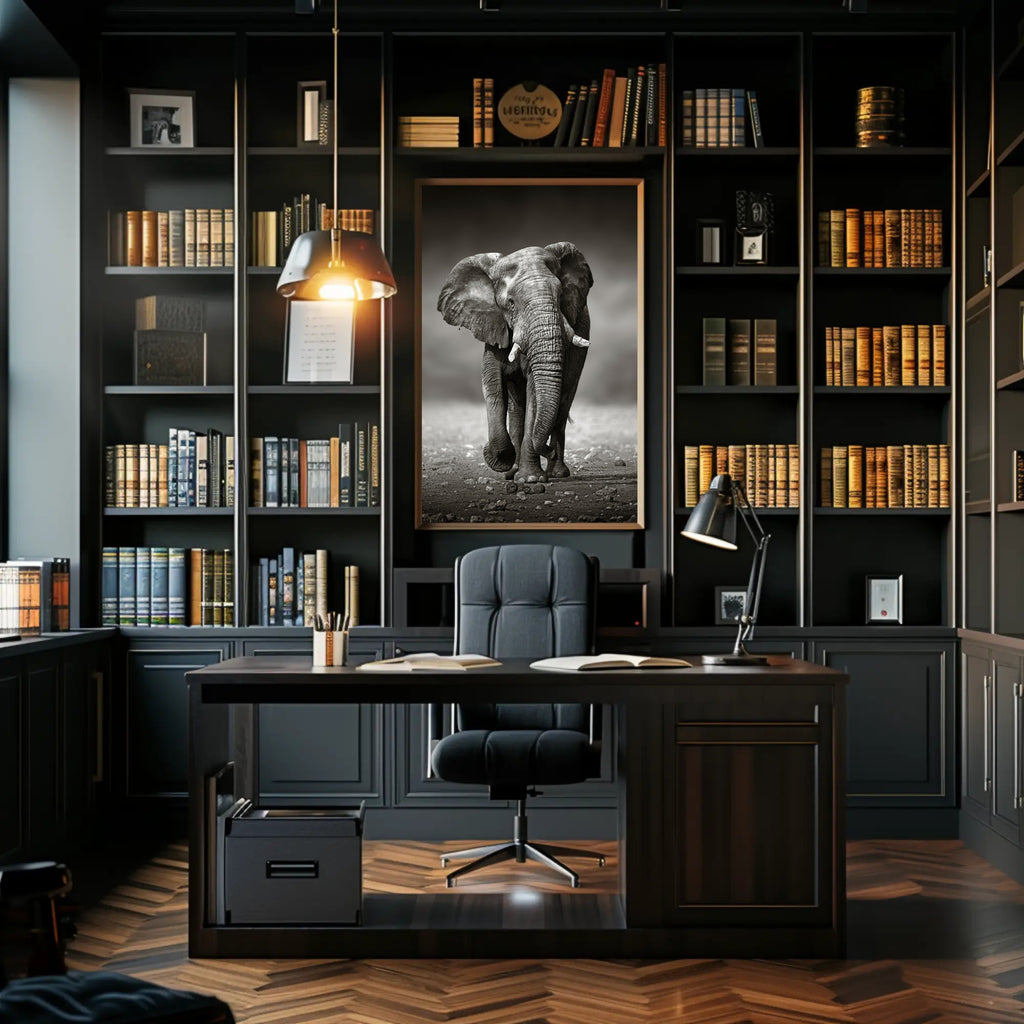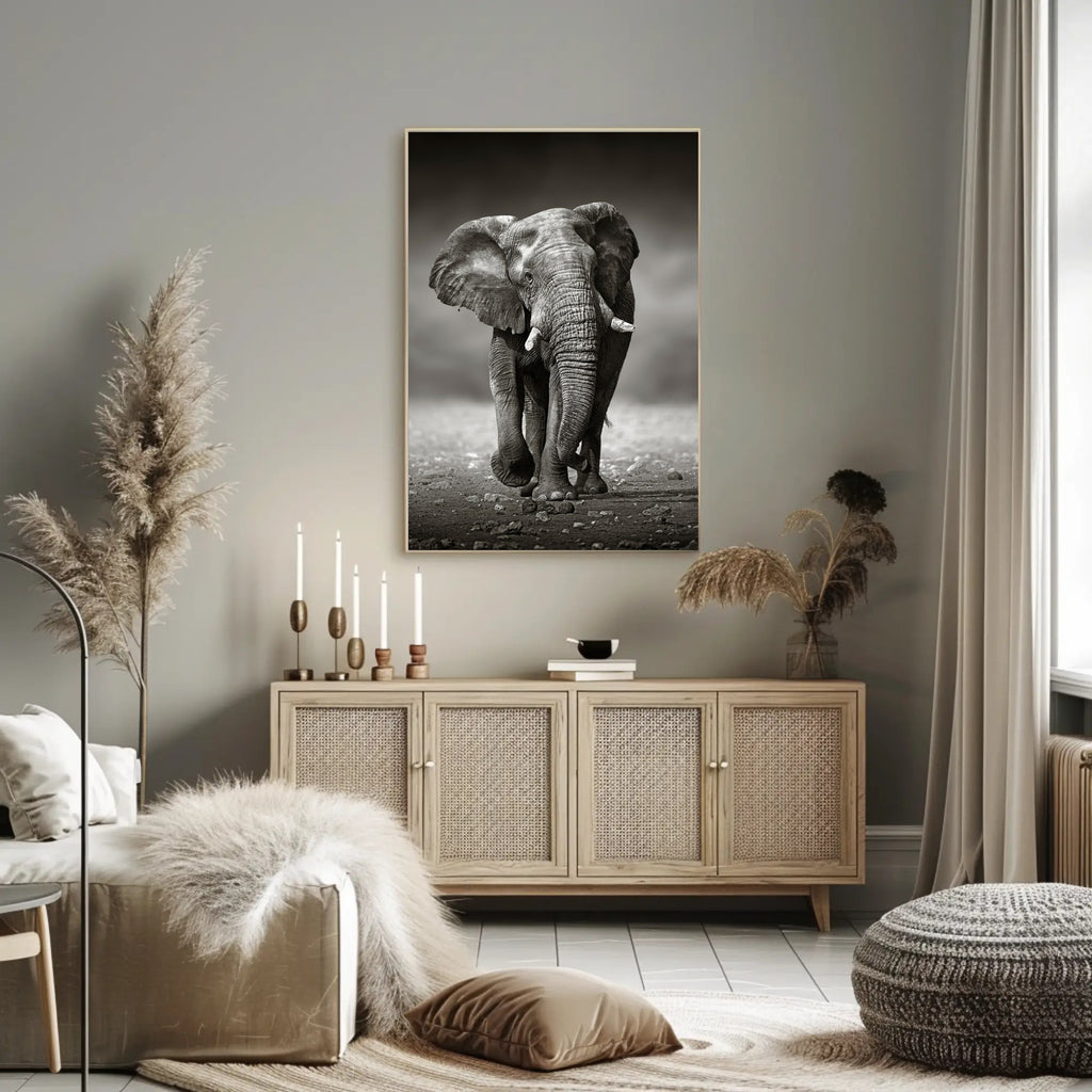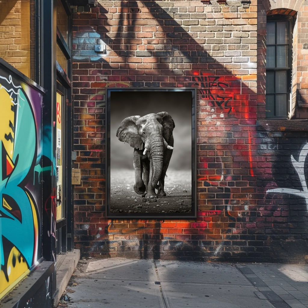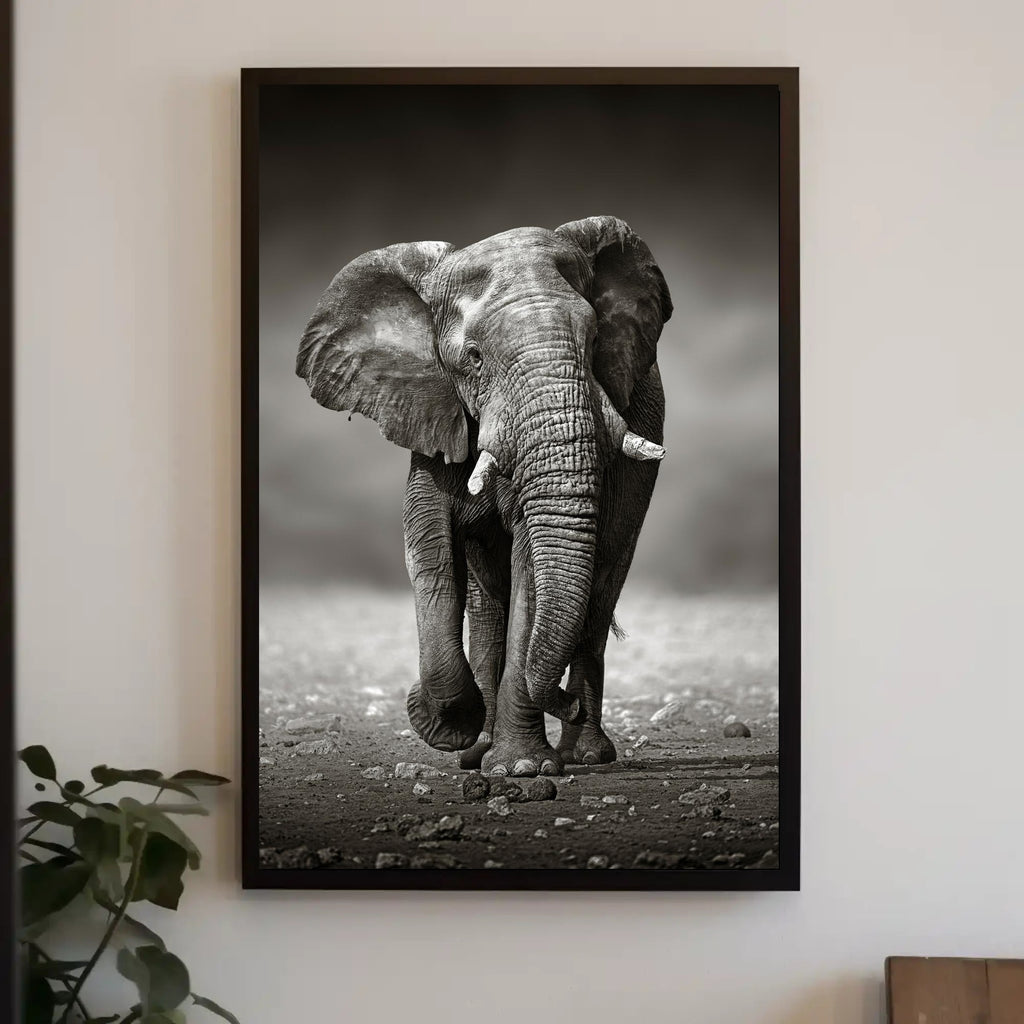 Majestic Elephant Photorealism in Black and White Animal Poster