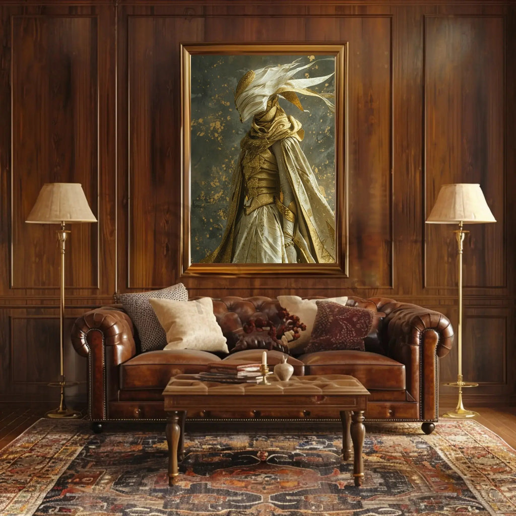- Museum-quality print: High-resolution artwork with rich gold and ivory tones that preserve fine detailing and fabric-like texture.